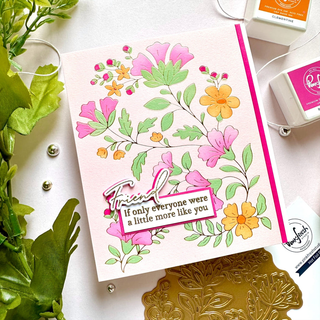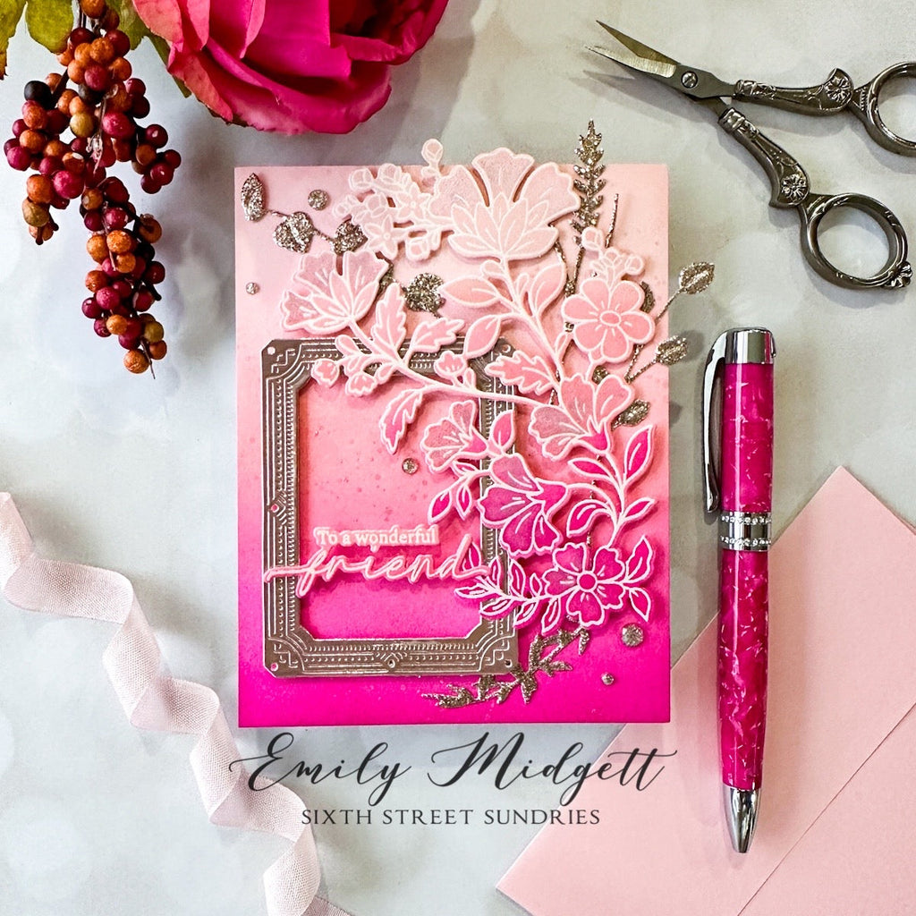 This 4 x 6 clear stamp set, designed by Inna Moreva, is meant to coordinate with the Beautiful Day die set (226724) and Beautiful Day layering stencil set (226824). There is also a matching Beautiful Day hot foil plate (226924) available for separate purchase. The set features a lovely stem of folk inspired flowers that can be easily aligned with the coordinating layering stencils and die set. You can stamp the floral stems and then blend in colors using the stencils in your preferred shades of ink. The outline stamped image can also be colored with various mediums such as watercolor, markers, and colored pencils, offering you versatility in your designs.