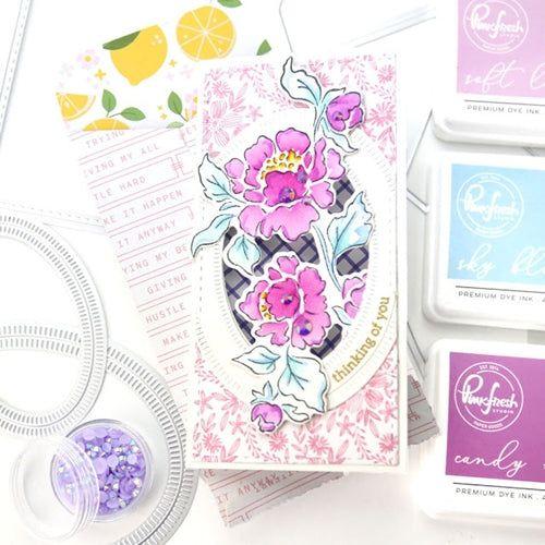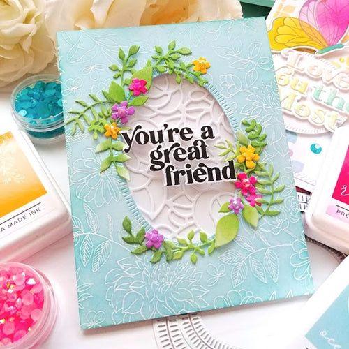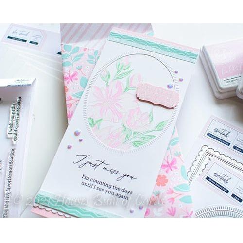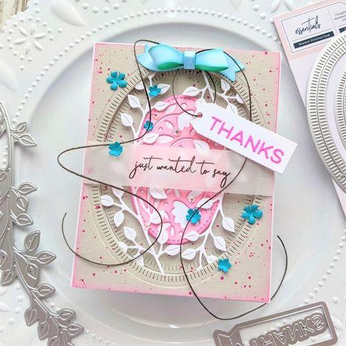2 piece die set designed as an essential for crafting basics. Say hello to the newest decorative edge, Blanket Stitched! This die set includes two ovals with a dual stitched edge. This leaves a blanket stitched edge on your shaker window, and also adds a blanket stitched edge to your die cut oval. However you plan to use these versatile oval dies, they will always have the blanket stitched edge.