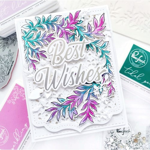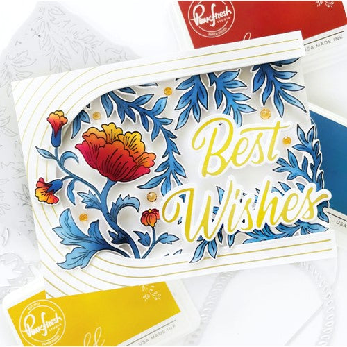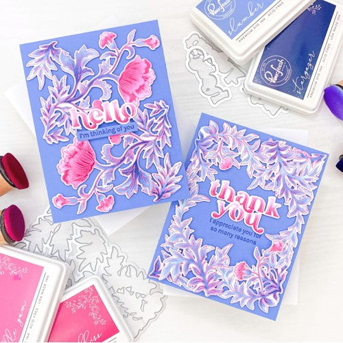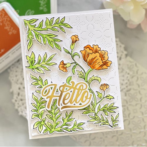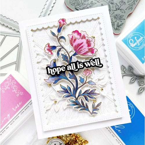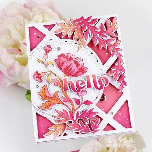 1 piece die set to coordinate with the Blooming Vines stamp set and Blooming Vines layering stencil set. All images have been merged into one piece to make it easier to die cut. Just line-up the one piece die to your stamped, foiled or stenciled images and run it through your die cut machine in one easy pass. You no longer have to tape down multiple dies, hoping they don’t shift as you run them through!