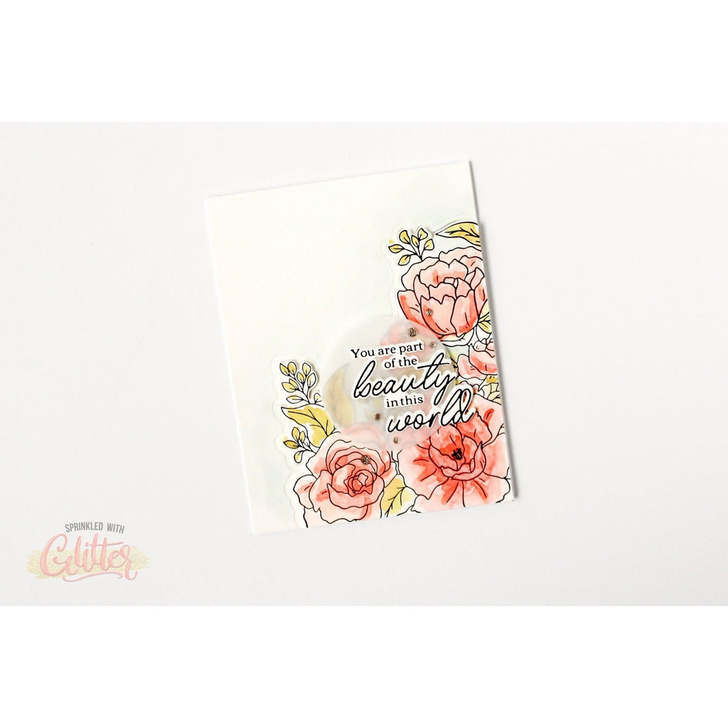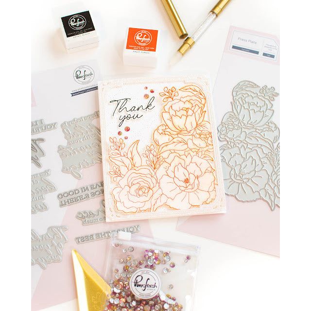 Create beautiful letterpress stationery with the Pinkfresh Studio Camellias Press Plate! A 1 piece press plate set designed by Emily Midgett, it coordinates perfectly with the Camellias die set (217023). Perfect for watercolor techniques, from easy color washes to advanced painting, this plate gives a high end feel to all your papercrafting and stationery projects.