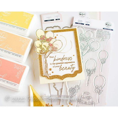 The 1-piece die easily cuts the Celebrate images included in the washi tape, layering stencils or stamp set in one pass through your die cut machine. With this innovative concept, you no longer must tape down multiple die pieces. Great for cutting the images out multiple times and bulk creating. Keep in mind that washi tape has a slick surface by nature, and you will want to tape the die down securely so it won’t shift as it runs through your die cut machine. There are two additional dies for cutting out the ‘birthday wishes’ and ‘congrats’ sentiments.