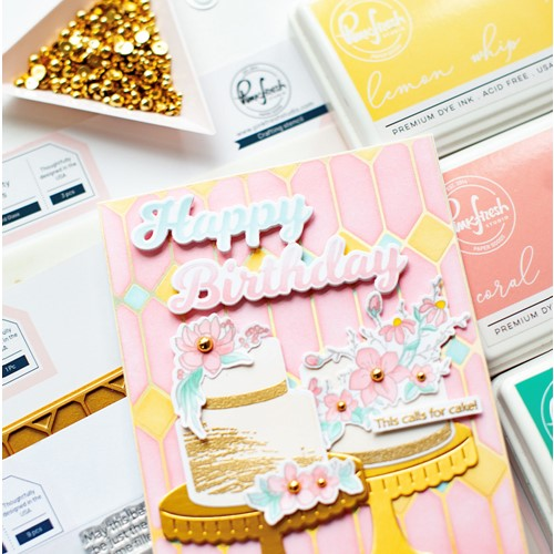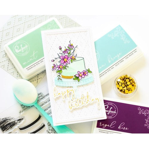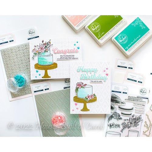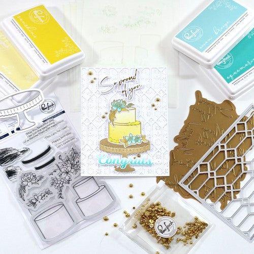Celebrate weddings, engagements, birthdays and more with this on trend and modern stamp set! The cakes and florals are merged into one stamp, making them easy to line up with both the layering stencils and 1 piece die. We’ve also included 4 stamps to add additional details to the cakes, giving them that modern and elegant feel. Easily ink blend colors to the cakes and flowers with the coordinating stencils in all your favorite shades of ink. You can also color the outline stamped image in your favorite mediums, including watercolor, markers and colored pencils. By offering different options within each design, you get the utmost of versatility when using PinkFresh Studio products!