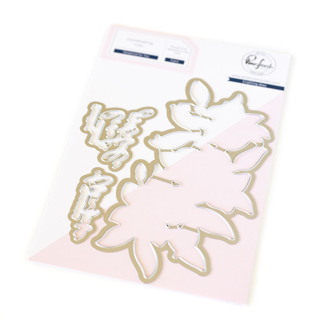 Enhance your crafting with Pinkfresh Studio Delighted For You Dies. This versatile 3 piece die set perfectly complements the Delighted For You stamp set (253524), press plate (243824), and stencil set (243724). The die effortlessly cuts around the lilies cluster and two larger sentiments, leaving a polished edge. Perfect for any crafting project.
