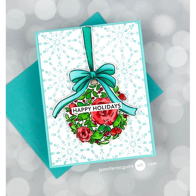 This 5 piece layering stencil set is designed to coordinate with the Floral Bauble stamp set and die set. Each stencil has guidelines for simple alignment when using alone. For a precise result, align each layer with the already-stamped image. Without the stamped image, you get a softer look. Add further detail by stamping with detail black or heat embossing a favorite powder for added shimmer. Each stencil measures 4.25 x 5.5 inches.