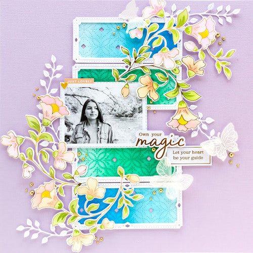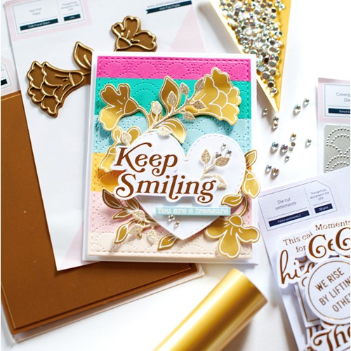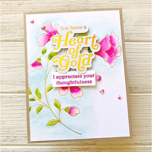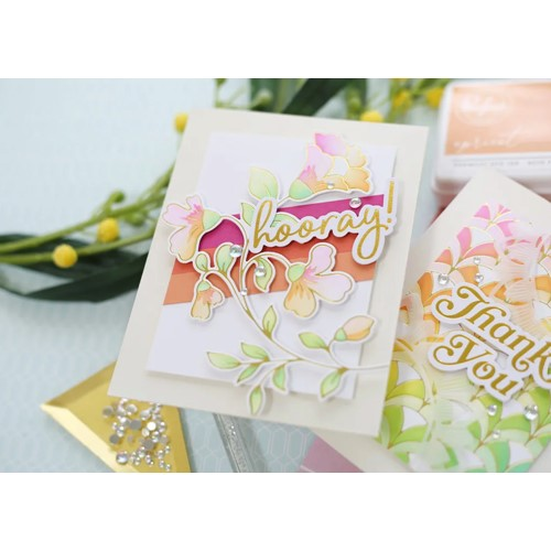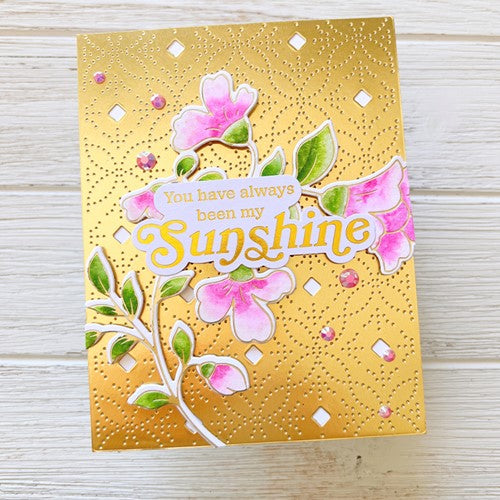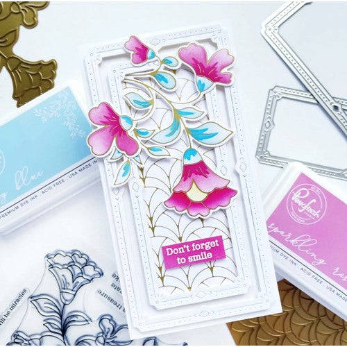 Create a stunning, letterpress feel to all your projects using PinkFresh Studio’s beautiful hot foil plates! Designed to work in any standard hot foil system, be sure to follow the instructions in your manual for a standard hot foil plate. Once foiled, the floral stem is perfect for all types of coloring; including watercolor, alcohol and brush markers, colored pencils and no-line coloring. Combine with the coordinating Folk Floral Stem layering stencil set to ink blend the images with all 48 shades of PinkFresh Studio’s premium dye inks. Use the coordinating Folk Floral Stem die to cut out the image.