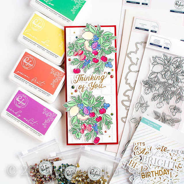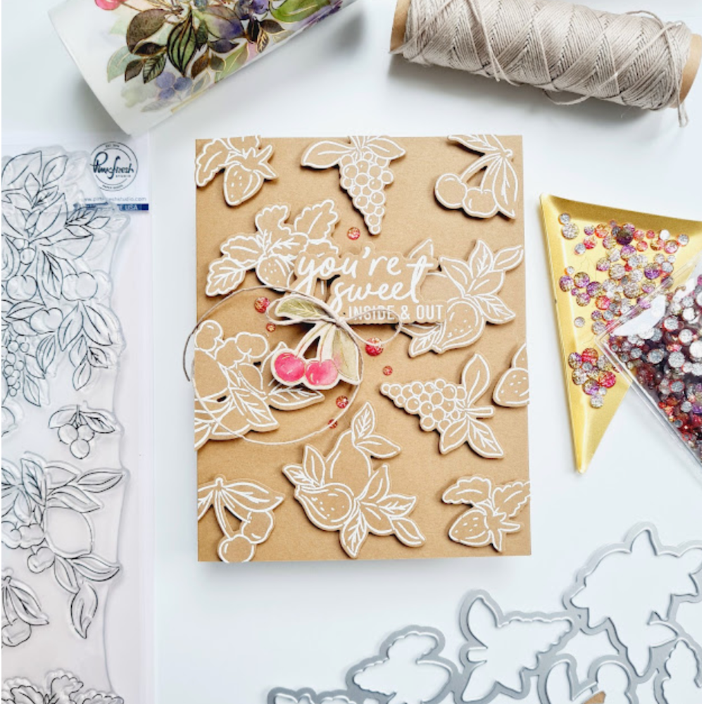 The PinkFresh Studio Fruitalicious Stencil Set is a fantastic product for card making enthusiasts looking to add a touch of fruity fun to their crafts. This 6-piece layering stencil set has been specially designed to coordinate with the Fruitalicious stamp set and Fruitalicious dies, allowing you to create beautiful, multi-layered images with ease.