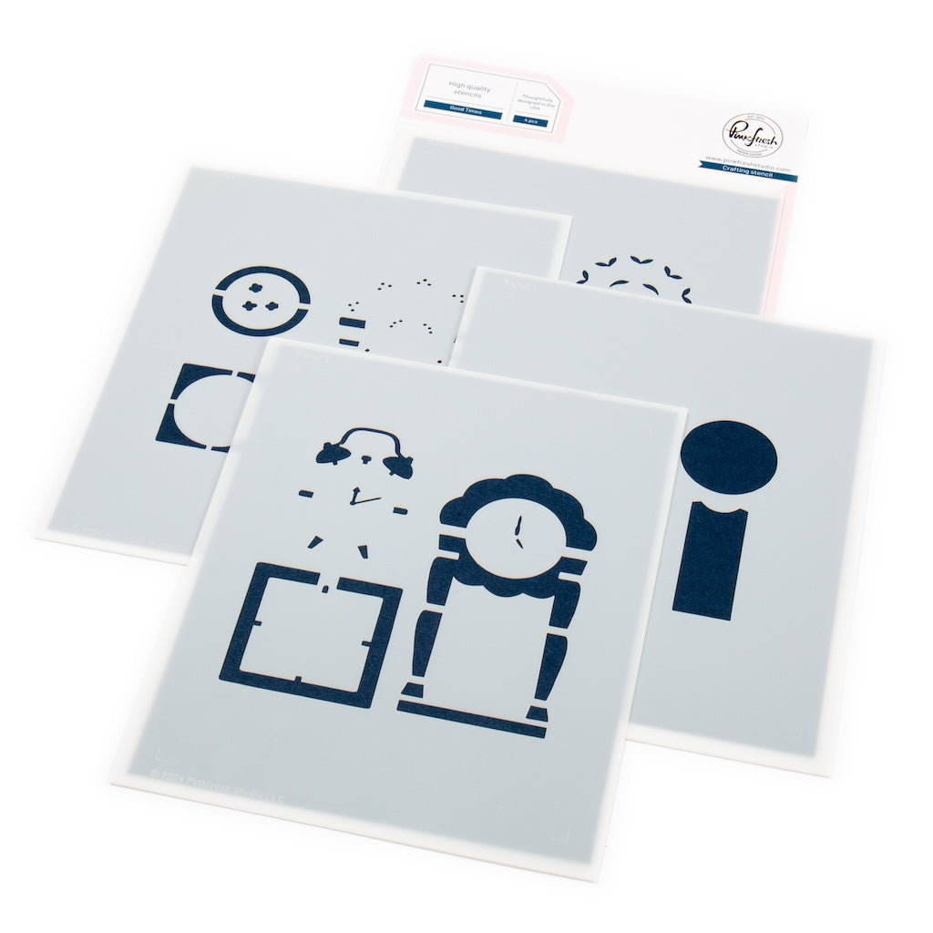 Enhance your artistic skills effortlessly with these coordinating stencils from Pinkfresh Studio. Effortlessly color in multiple images at once with the coordinating one-piece die, allowing you to spend more time creating masterpieces. Each stencil is precisely cut to match up perfectly with stamped designs, giving you crisp and clean results. With numbered designs and etched registration marks, these stencils make identification and alignment a breeze. Designed by Inna Moreva, this set of 4 high-quality mylar stencils adds a touch of sophistication to your creations. Measuring 4.25 x 5.5 inches, these stencils come with a full-color example for inspiration.