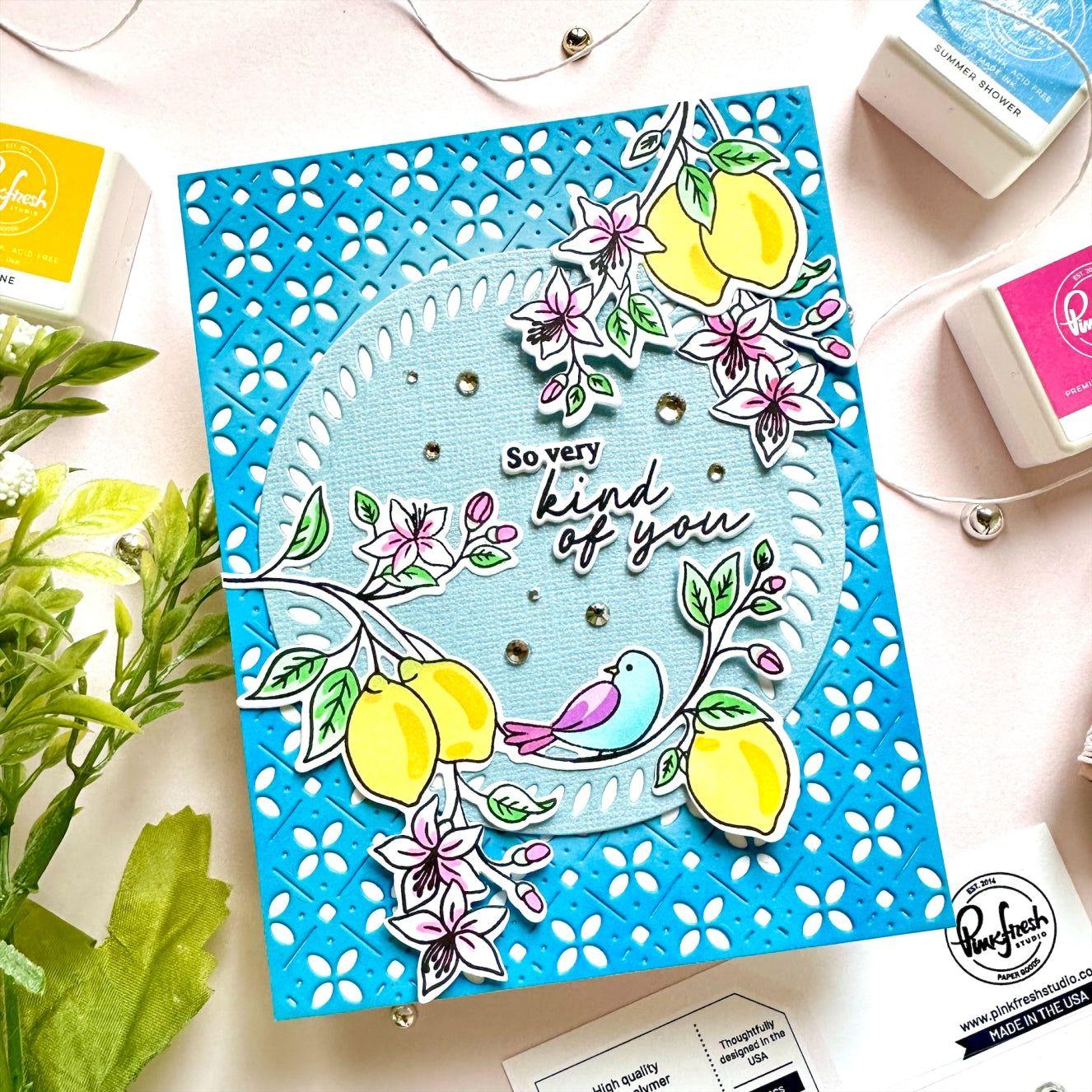 This 4 piece die set is specially designed to complement the Heart of Gold stamp set (227024) and Heart of Gold layering stencil set (227224). One of the dies is specifically designed to cut the lemon branches, leaving a delicate white border. Additionally, there are dies for the three scripted sentiments featured in the stamp set.