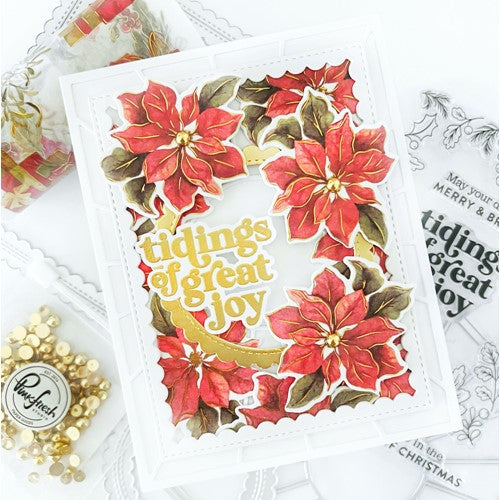 This innovative stamp includes all the holiday elements on one stamp, so it pairs perfectly with the 1-piece coordinating die. The 1-piece stamp is slightly larger than 8.5 inches. It will likely fit at an angle in a standard stamping platform, or you will need to use a larger stamping platform. You can also use the hinged lid method that we have showcased in PinkFresh Studio's Tips and Tricks section on our YouTube channel.