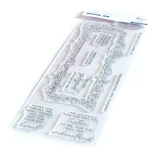 4 x 12 inch photopolymer clear stamp set designed by Inna Moreva. Made to coordinate with the Incredibly Grateful die set and the Incredibly Grateful stencil set. Available for purchase separately.