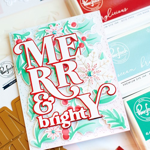 1 piece hot foil plate designed by Kaitlin Sheaffer. Designed to coordinate with the Merry and Bright die.