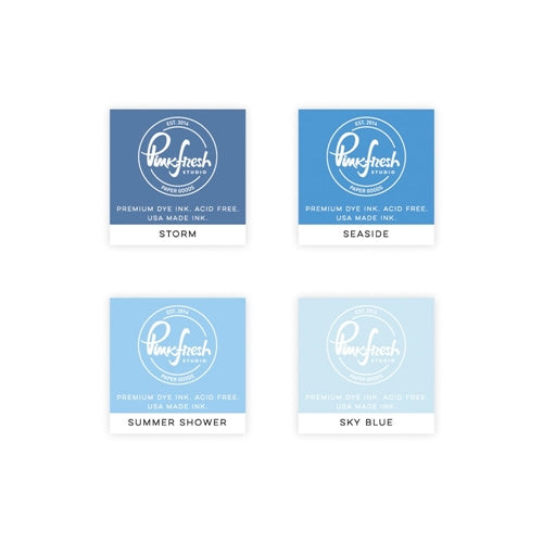 A pack 4 mini ink cubes. Colors included are Storm, Seaside, Summer Shower and Sky Blue.