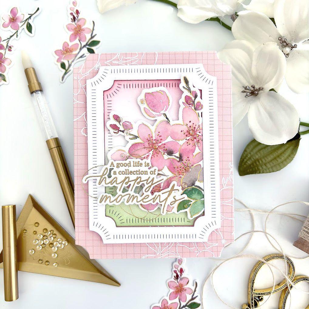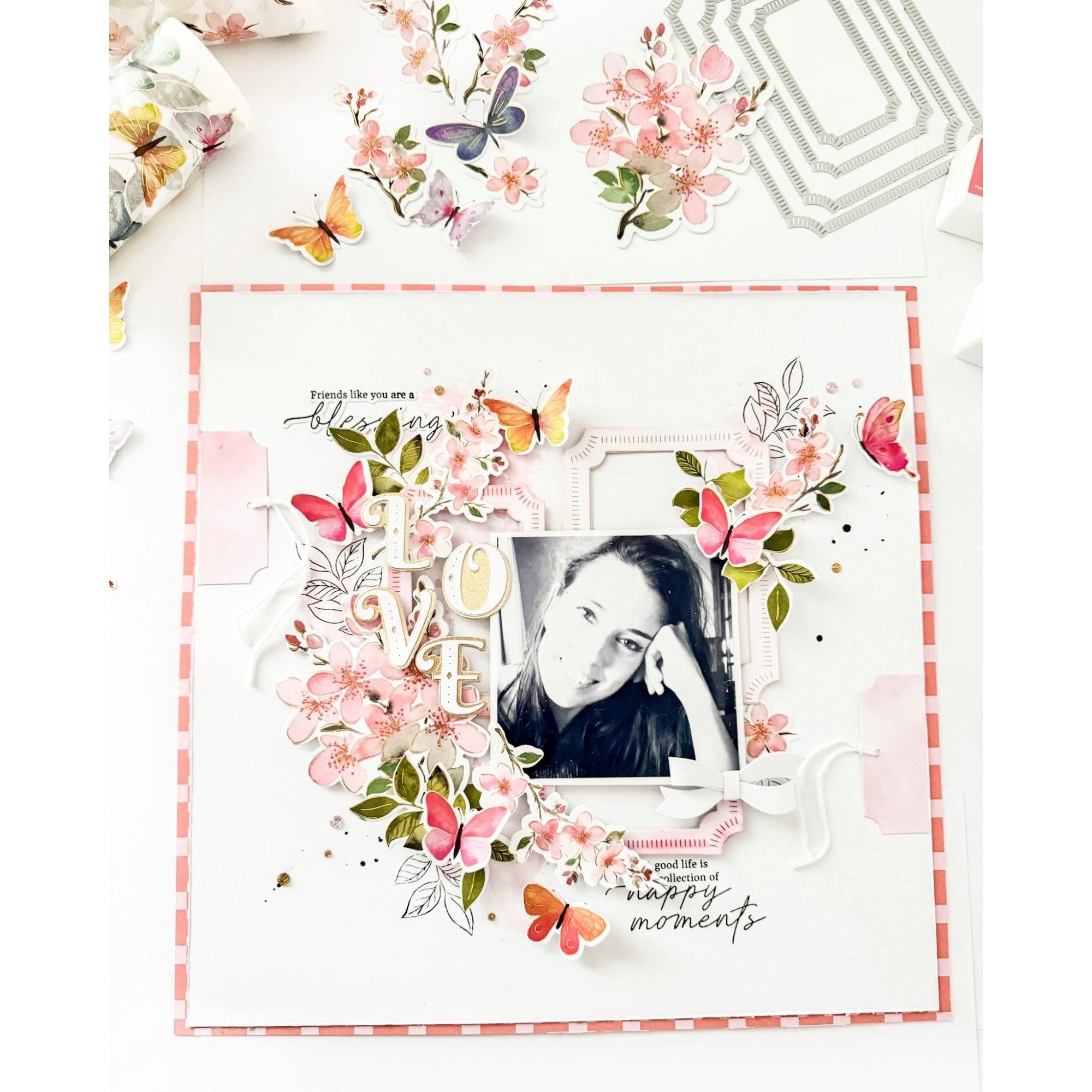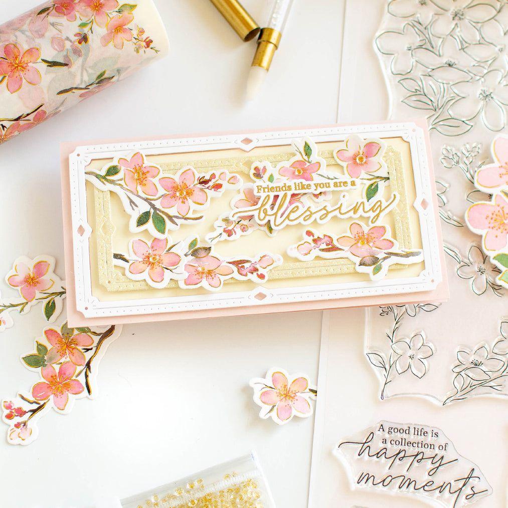 Enhance your crafts with ease using the Sakura Washi Tape created by Valentine Leclerc. This versatile tape perfectly complements the Sakura stamp set (240324), layering stencils (240524), and die (240424), allowing you to effortlessly create stunning watercolor cherry blossom branches. With a charming color palette of soft pinks and lush greens, this washi tape is a must-have for any project. And with the added touch of gold foiling, your designs will truly shine! Each image can be easily cut out using the coordinating die and attached to cards, layouts, notebooks, mini albums, and more. For even more options, mix and match with the coordinating stamp set or layering stencils. Size: 4 inches wide x 10 meters long.