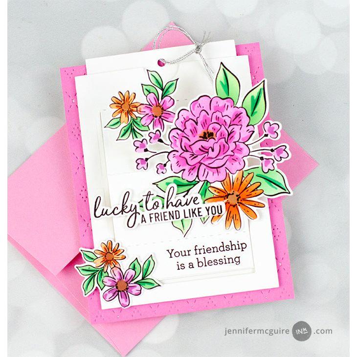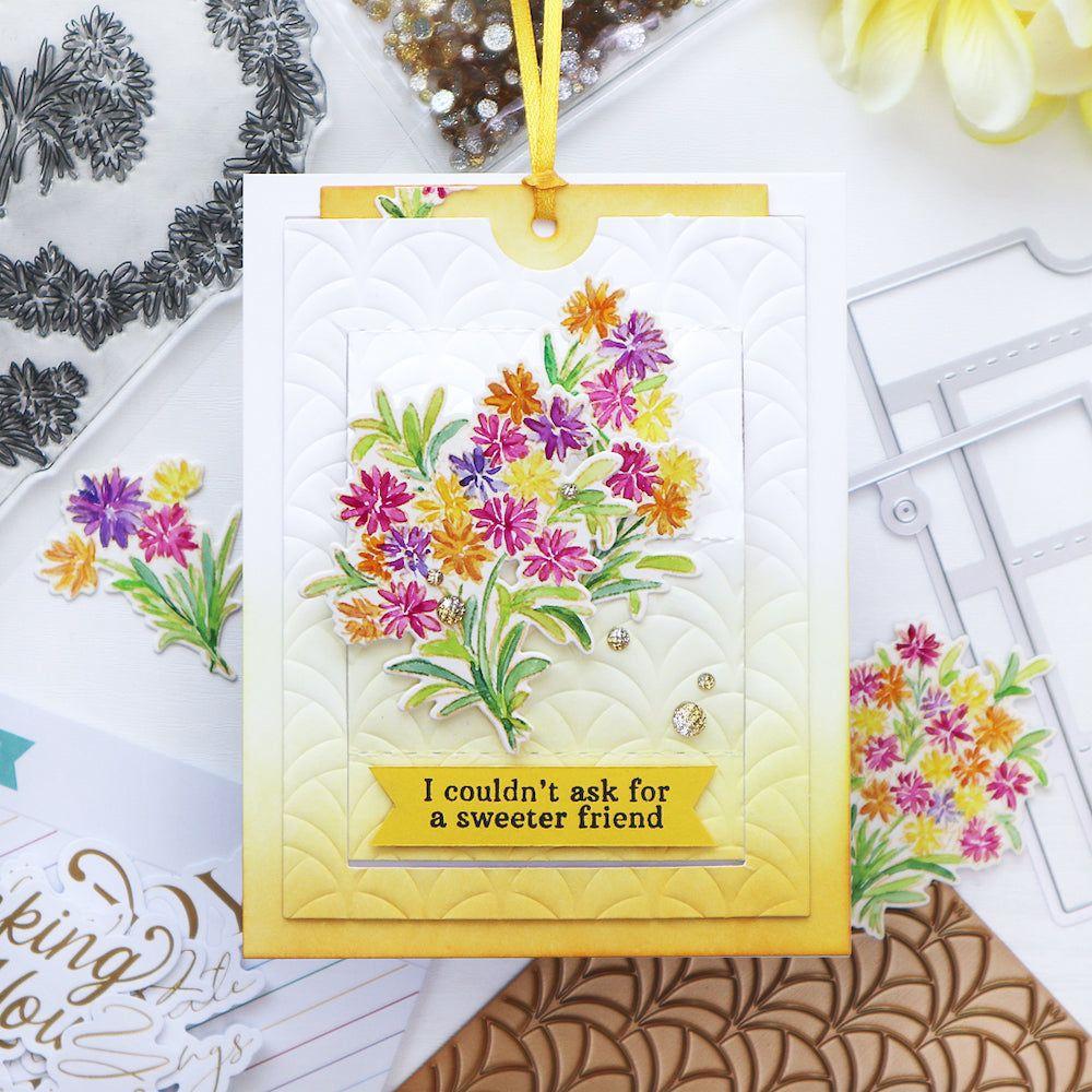 The three dies can be used together to create the slider mechanism, or separately to create a tag, a pocket with a peekaboo flap, or a standard 4.25 x 5.5 inch panel. This flexibility allows you to create a wide variety of card designs, from simple and elegant to more complex and interactive.