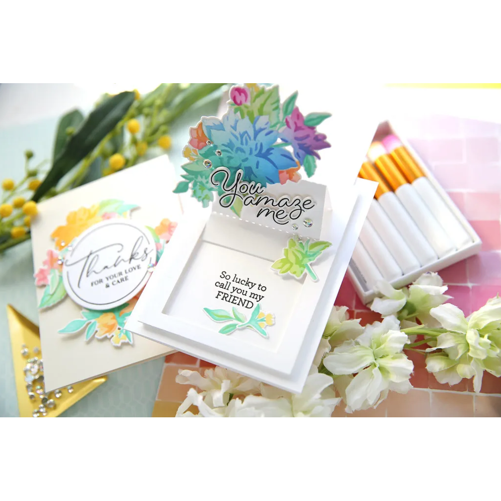 The PinkFresh Studio Slider Die Set is a versatile 3-piece die set that allows you to create an interactive card base with ease. The set includes all the necessary components to craft an A2 sized card with an interactive slider function, perfect for adding an element of surprise and excitement to your cards.