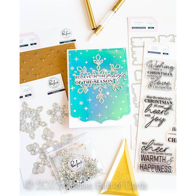 Create a shimmering, professional look on all of your projects with PinkFresh Studio's Sparkle and Shine Hot Foil Plate. This background hot foil plate adds a letterpress feel to your work and measures 4.25 x 5.5 inches. Each plate is designed by Kaitlin Sheaffer and is compatible with any standard hot foil system - just follow the instructions in your manual for use. Perfect for adding a festive touch to any card!