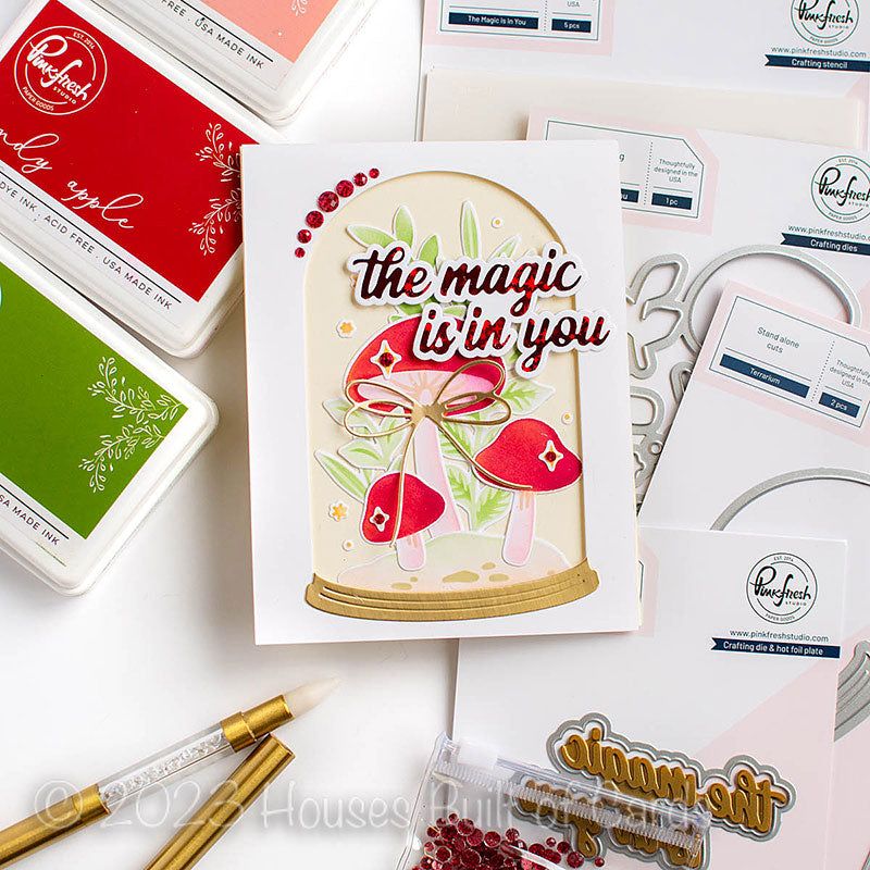 Introducing the PinkFresh Studio Terrarium Die, a versatile 2-piece die set designed to perfectly complement the enchanting The Magic is in You layering stencil set and The Magic Is In You die. With these dies, you can effortlessly bring your imaginative terrarium designs to life!