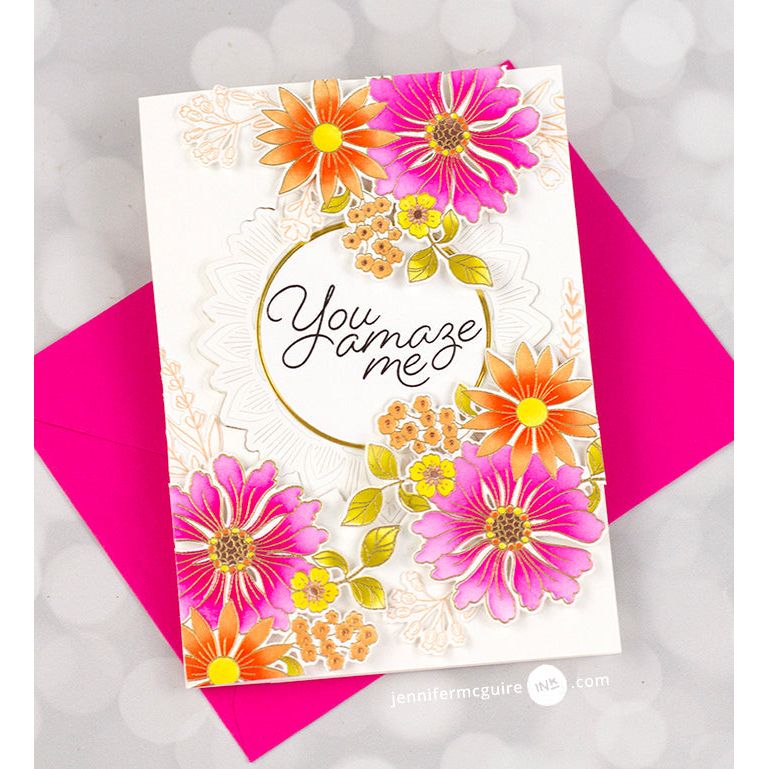 This 6 piece layering stencil set is specially curated to coordinate with the Thanks for Being There stamp set and die set. Each stencil comes with alignment guides for perfectly arranged stencils when used solo, or you can match each layer to stamped images for a more detailed look. Stencil size is roughly 4.25 x 5.5 inches and can be further embellished by stamping with detail black or heat embossing with your favorite powder for added shimmer.
