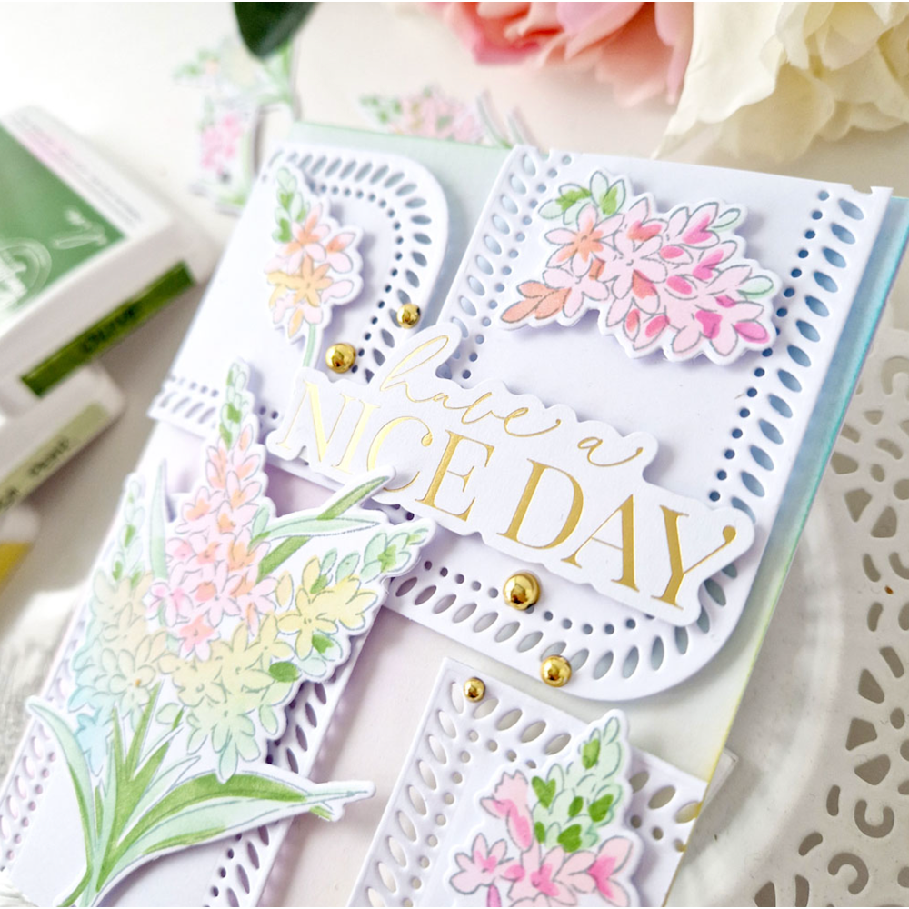 This set allows you to create a soft, no-line coloring feel when used without the stamped image. If you want to add more detail to the image, simply use the coordinating stamp to add more detail by stamping with detail black or heat embossing in your favorite powder for added shine.