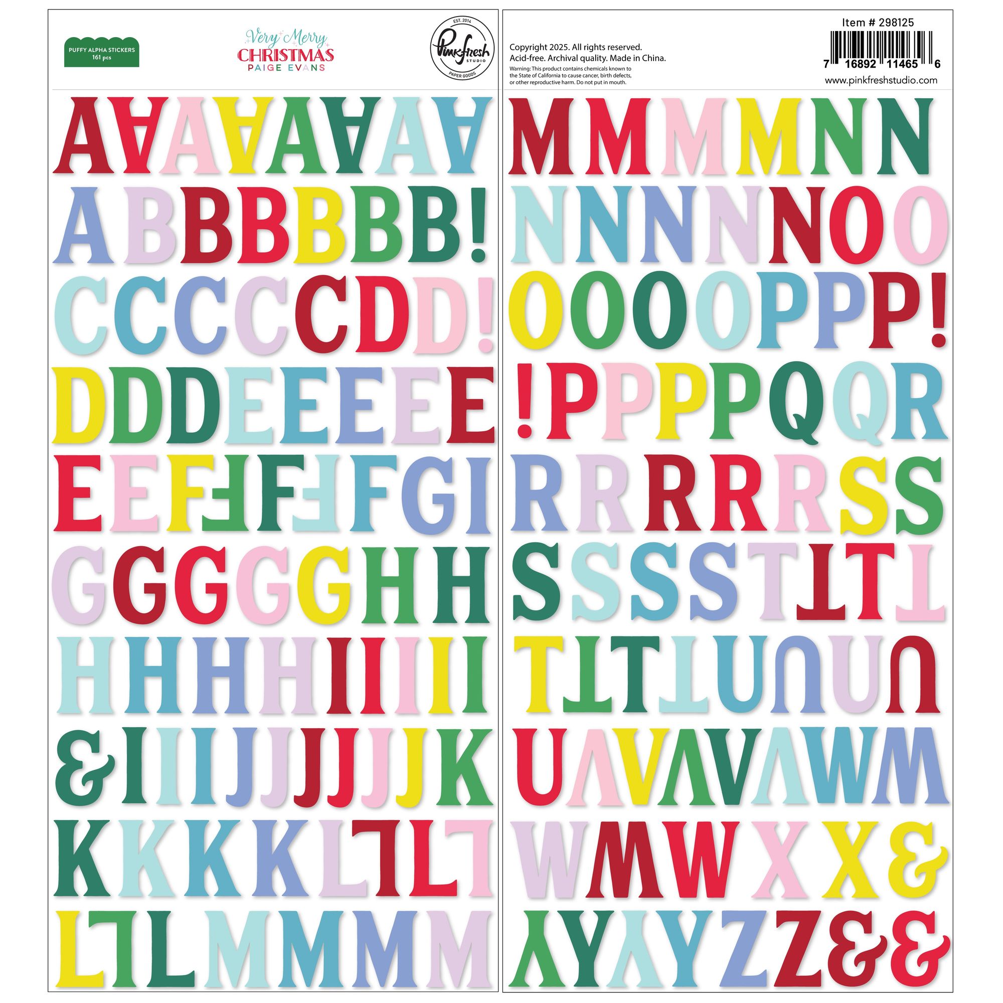 Pinkfresh Studio Very Merry Christmas Puffy Alpha Stickers come with two 5.5 x 11 inch sheets filled with 161 colorful puffy letters. Available in a cheerful mix of red, orange, yellow, green, blue, purple, and pink, these archival quality, acid-free stickers are perfect for adding playful flair to your holiday projects!