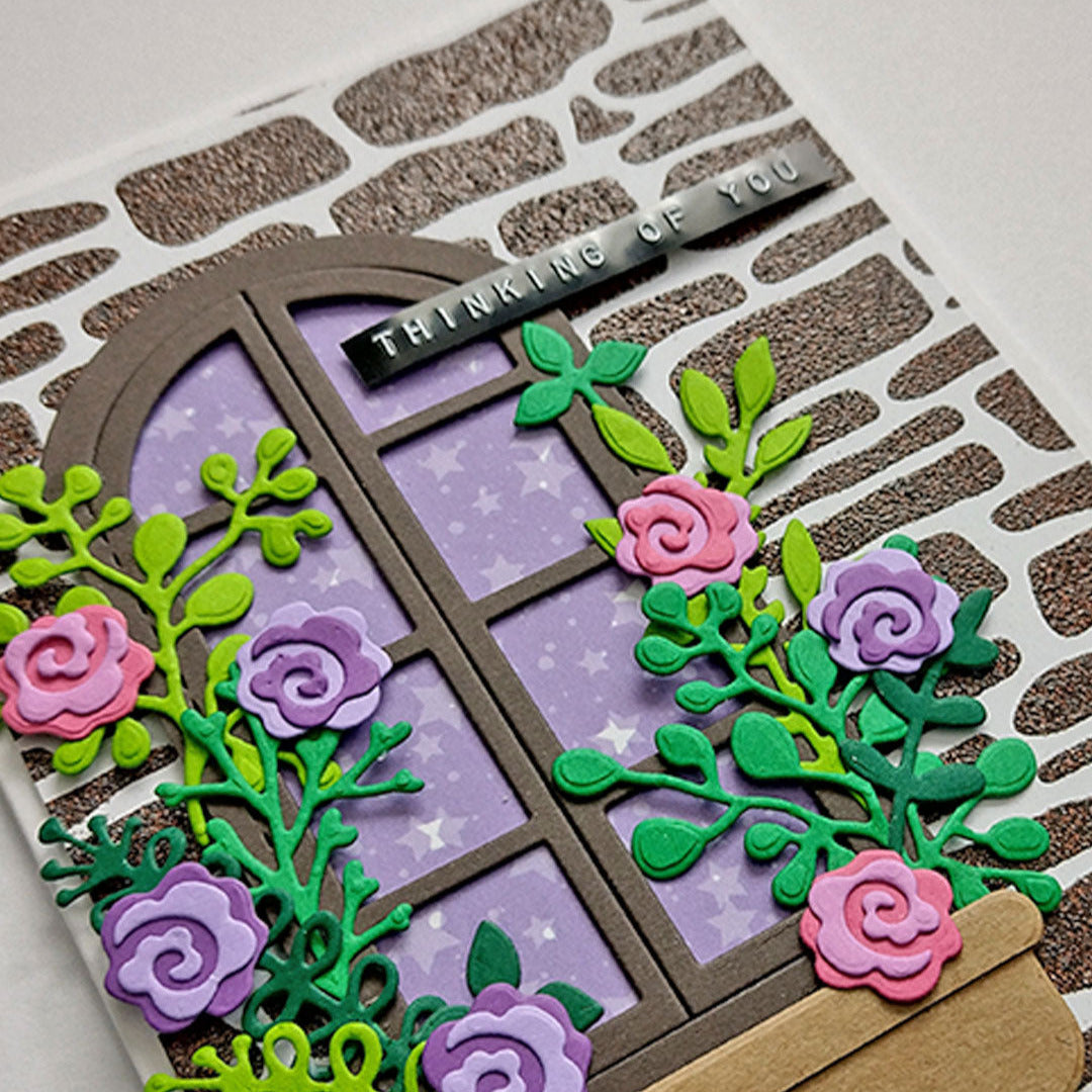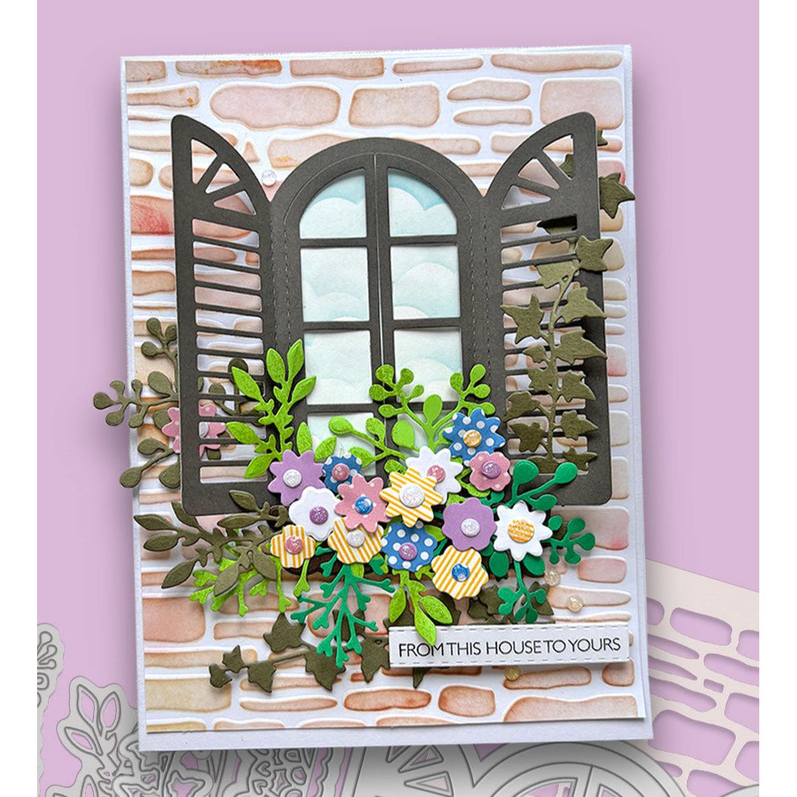 For a beautifully cohesive look, pair it with the Pretty Shutter Window Dies pd8842 to craft a stunning window scene with a textured background.