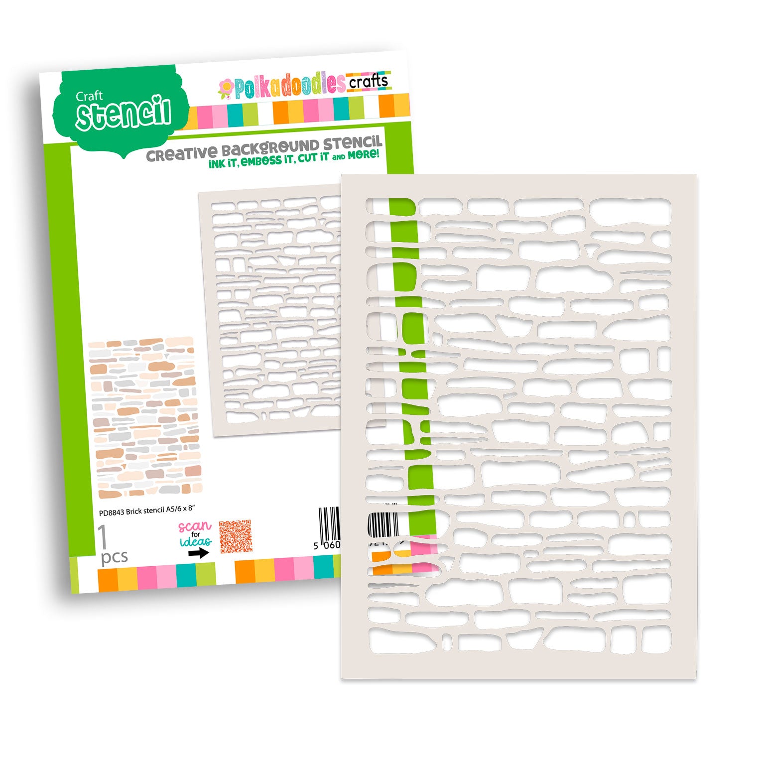 Polkadoodles Brick Stencil, from the Hello Spring Collection, is perfect for adding architectural charm to your handmade cards, scrapbook pages, art journals, and planner stationery. Measuring approximately 6 x 8 inches, this stencil creates realistic brick or stone textures that add depth and character to your designs. Use it with inks, embossing pastes, or paints for a variety of effects.