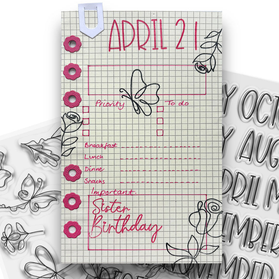 Polkadoodles Calendar Months and Numbers Matchables Clear Stamps, from the Hello Spring Collection, are perfect for designing unique greeting cards or crafting a personalized planner spread that captures the beauty of every month. This 6 x 8-inch clear photopolymer stamp set includes 26 pieces. It features the name of each month in capital letters, numbers 0-9, and the ordinal indicators "ST," "RD," "ND," and "TH." Coordinates with Calendar Months and Numbers Outline Dies pd8881.