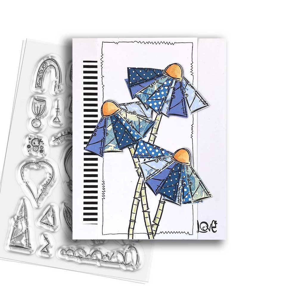 The stamp shapes are perfect for building gorgeous layered flowers, as well as other elements like toadstools and mushrooms. You can even use them to build patterns for backing papers, zentangling, and creating your own coloring pages. The possibilities are truly endless! The set includes packaging with ideas to get you started, but as the stamps are clear Polymer, you can position them to create your own unique designs. The more you use them, the more ideas will come to mind!