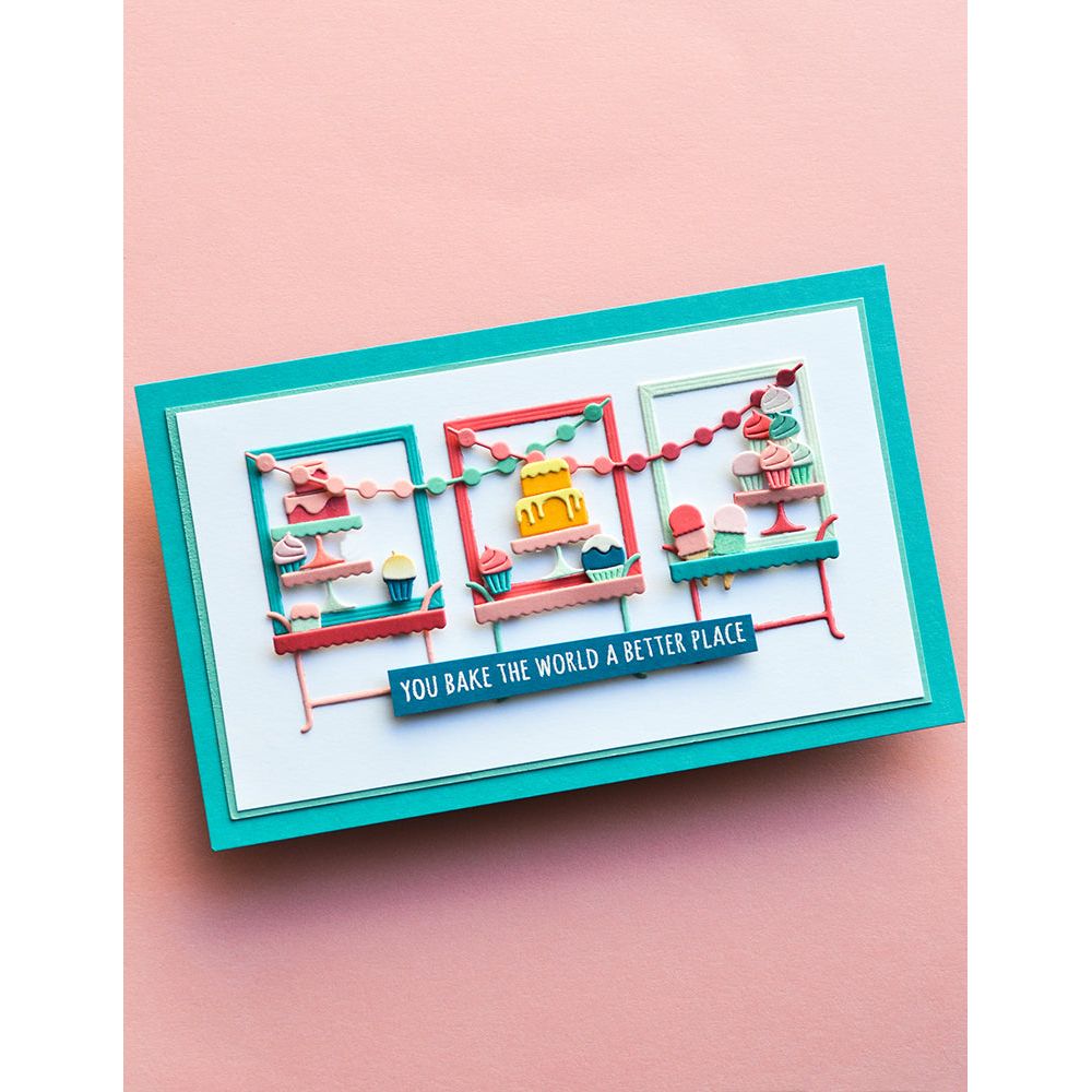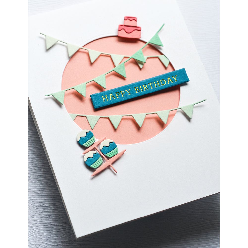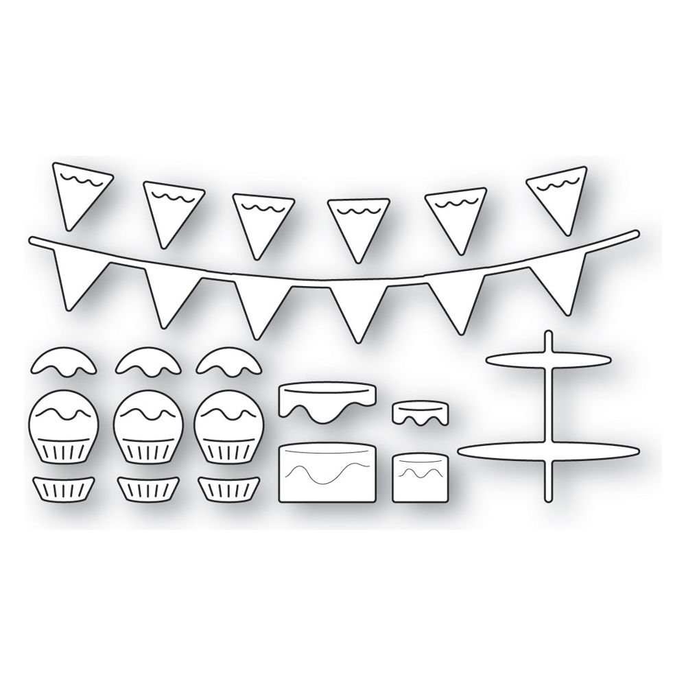 Poppy Stamps Corner Shoppe Birthday Treats Dies are crafted from durable steel and are compatible with nearly every machine available on the market. These versatile dies can be used on various materials, including cardstock, felt, fabric, or shrink plastic, giving you the ability to cut, stencil, emboss, and bring your creative ideas to life. The set includes 1 die that cuts out 21 charming designs, all detabbed and mounted on a magnetic sheet for ease of use. With approximate dimensions ranging from a 1 x 1-inch cake stand to 0.6 x 0.3-inch cakes when assembled, and a 3.5 x 0.6-inch banner when assembled, along with (3) 0.4 x 0.4-inch cupcakes when assembled, this set provides everything you need for a delightful dessert table. From string flags to cupcakes, cakes, and a dessert stand, these dies offer endless possibilities for crafting birthday-themed creations. Plus, they coordinate seamlessly with Corner Shoppe Birthday Celebrations 2620, Corner Shoppe Dessert Stand 2621, and Corner Shoppe Pop Up Easel Set 2623 dies, allowing you to expand your creative options and design stunning birthday-themed projects with ease.