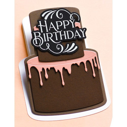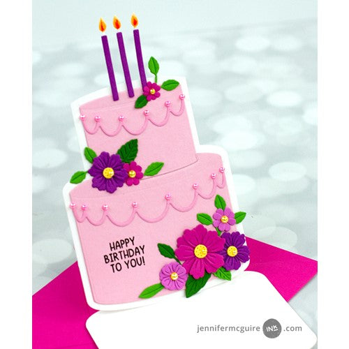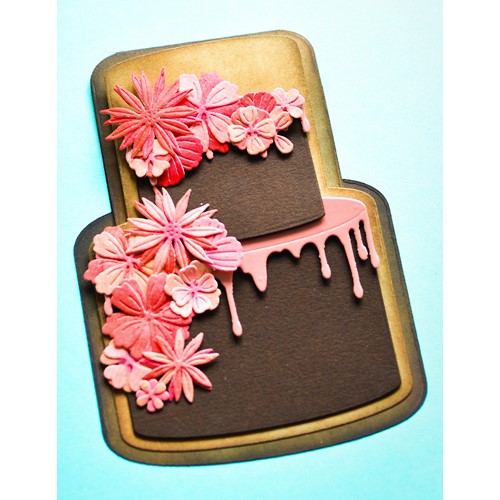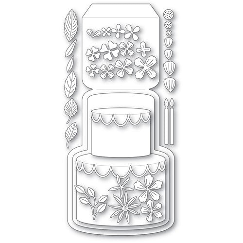 Poppy Stamps dies are made of durable steel and usable in nearly every machine on the market! Use on cardstock, felt, fabric or shrink plastic. Cut, stencil, emboss and create! 12 dies included, cuts out 40 designs. detabbed and mounted on a magnetic sheet. Approximately 4 x 8.7 inches easel, 3.6 x 5.2 inches background, 2.2 x 1.9, 3.3 x 2.8 inches cakes, 3.4 x 0.7, 2.2 x 0.6 inch icing, (2) 0.2 x 1.7 inches candles, 0.2 to 0.4 inch middles, 0.2 to 1.2 inches leaves, 0.3 to 0.6 inch petals, 0.5 to 0.7 inch clovers and 0.5 to 1.2 inches flowers. Works with Layer Cake Drip Icing 2466.