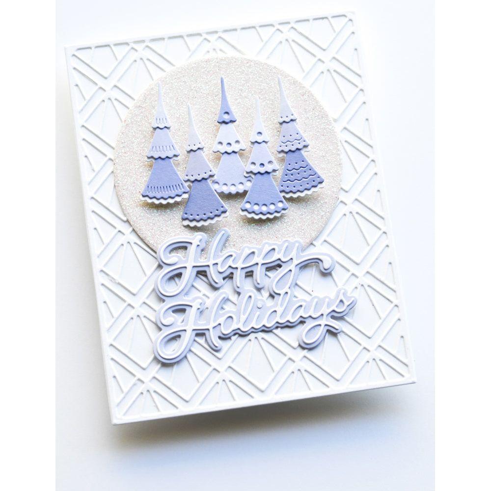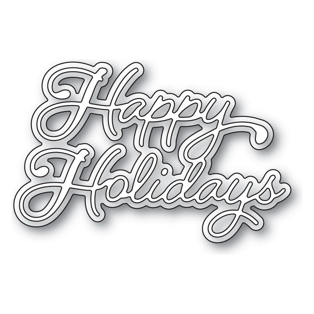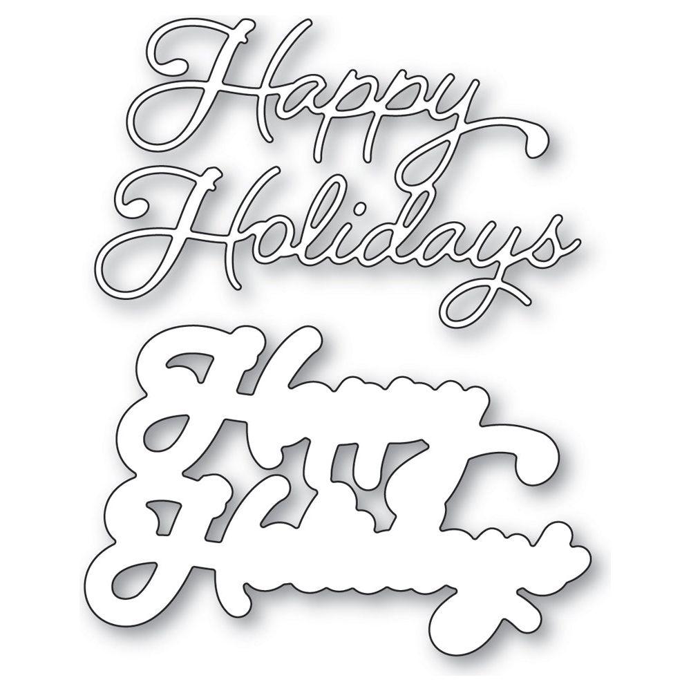 Poppy Stamps Happy Holidays Moonlight Script Dies are part of the Nordic Wonderland Collection. Crafted from durable steel and are compatible with nearly every machine available on the market. These versatile dies can be used on various materials, including cardstock, felt, fabric, or shrink plastic, giving you the ability to cut, stencil, emboss, and bring your creative ideas to life. The set includes 2 wafer-thin dies, approximately 2.8 x 1.8 inches for "Happy Holidays" and 2.9 x 1.9 inches for the outer shadow. The design features the words "Happy Holidays" in a scripted font along with its shadow, perfect for holiday-themed crafting projects.