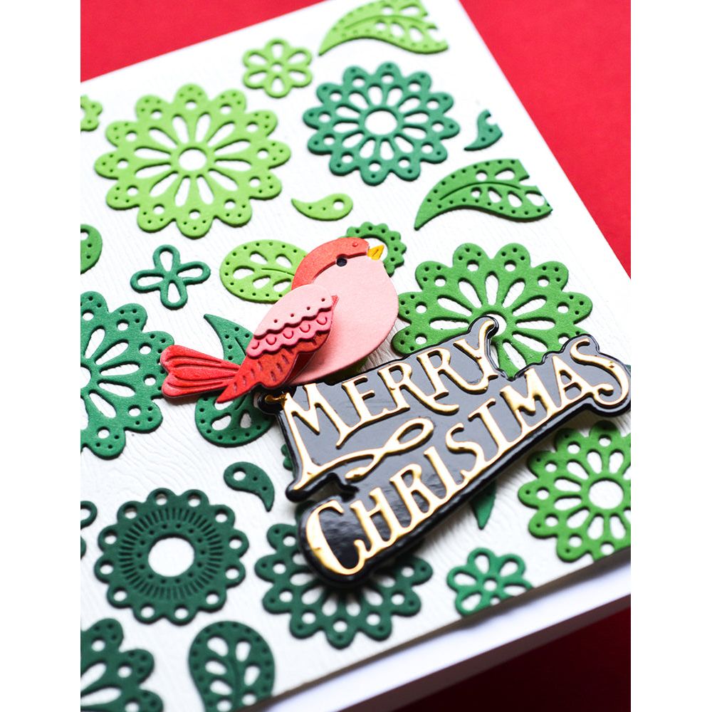 Poppy Stamps Nordic Bird Dies are versatile crafting dies made from durable steel, designed to be compatible with almost all die-cutting machines available. These dies can be used on various materials such as cardstock, felt, fabric, and shrink plastic, allowing you to cut, stencil, emboss, and create a wide range of projects. This set includes 1 die, which cuts out 6 pieces. Layer these die-cut pieces to construct an endearing little bird complete with a beautifully patterned wing. When assembled, the bird measures approximately 1.9 x 1 inches, adding a charming touch to your crafting endeavors.