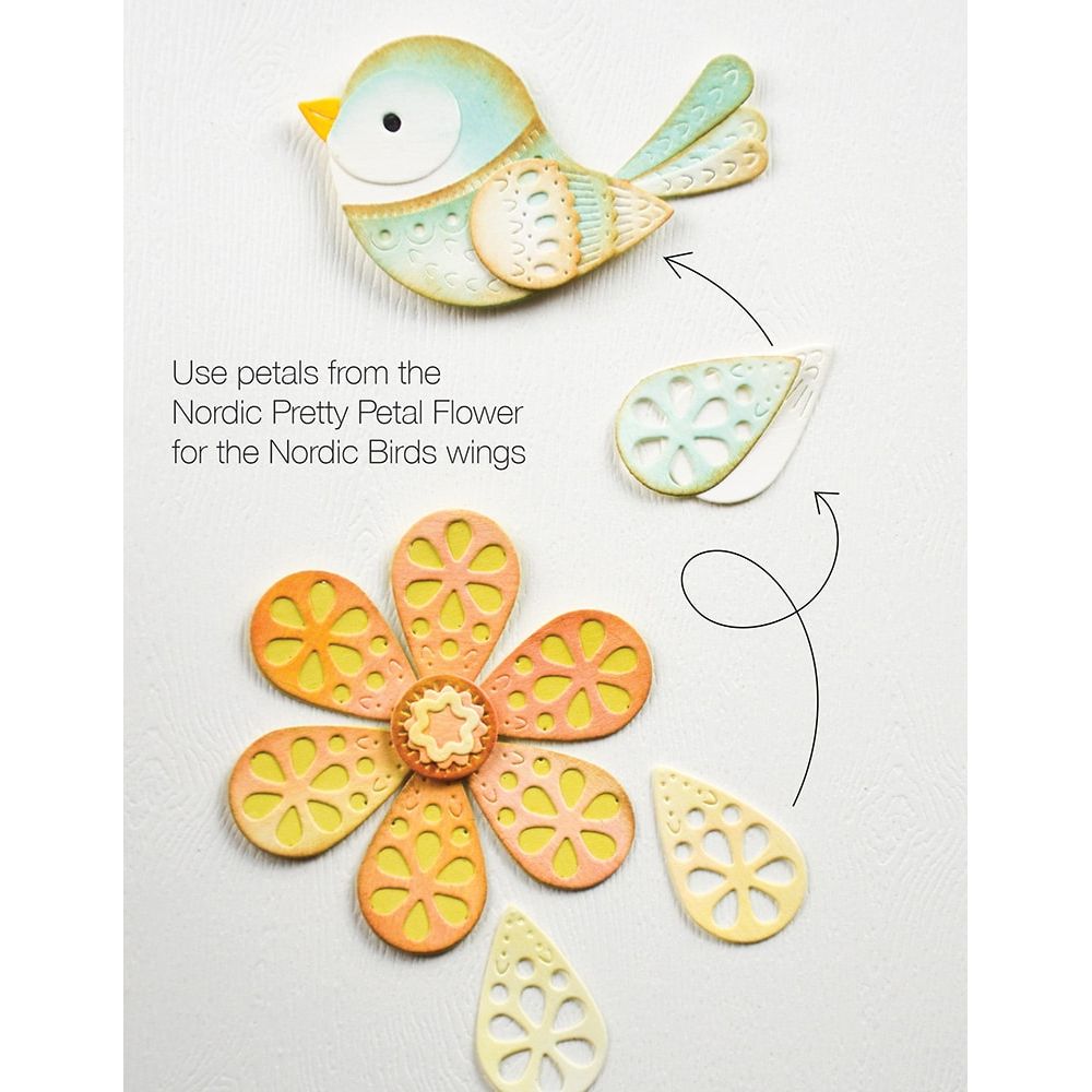The Poppy Stamps Nordic Bold Bird Dies, part of the Nordic Forest Collection, are crafted from durable steel and compatible with most die-cutting machines. These versatile dies cut through cardstock, felt, fabric, and shrink plastic, and can also be used for stenciling and embossing. The set includes two dies that cut 7 individual pieces, which assemble into a patterned bird measuring approximately 2.6 x 1.6 inches. Pairs well with Nordic Love Bird 2707, Nordic Petalpoint Bird 2711, and Nordic Pretty Petal Flower 2713 dies.