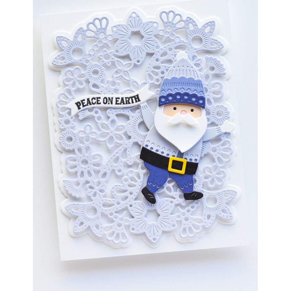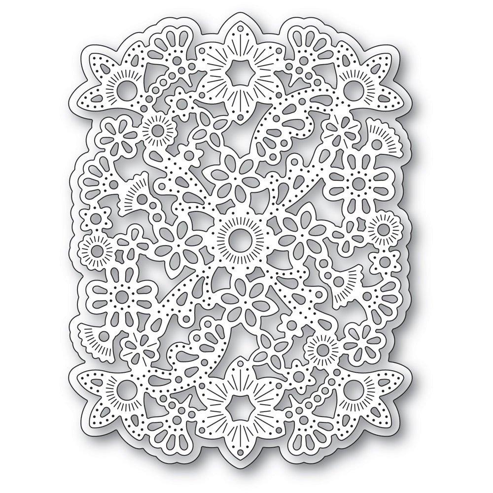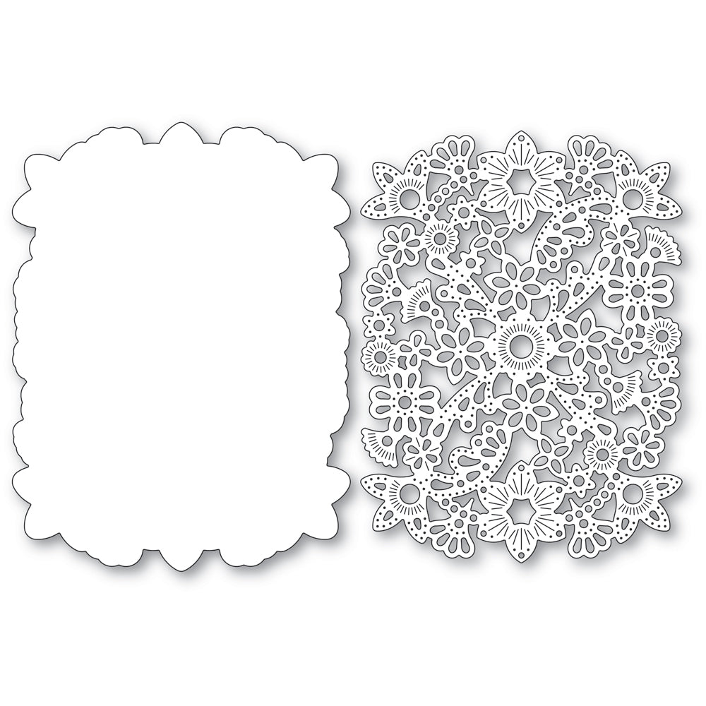 Poppy Stamps Nordic Fancy Background Dies are part of the Nordic Wonderland Collection. Crafted from durable steel and are compatible with nearly every machine available on the market. These versatile dies can be used on various materials, including cardstock, felt, fabric, or shrink plastic, giving you the ability to cut, stencil, emboss, and bring your creative ideas to life. The set includes 2 wafer-thin dies, approximately measuring 3.9 x 5.2 inches and 4.1 x 5.4 inches outer dimensions. These dies feature intricate lace floral patterns, perfect for creating beautiful backgrounds for your crafting projects.