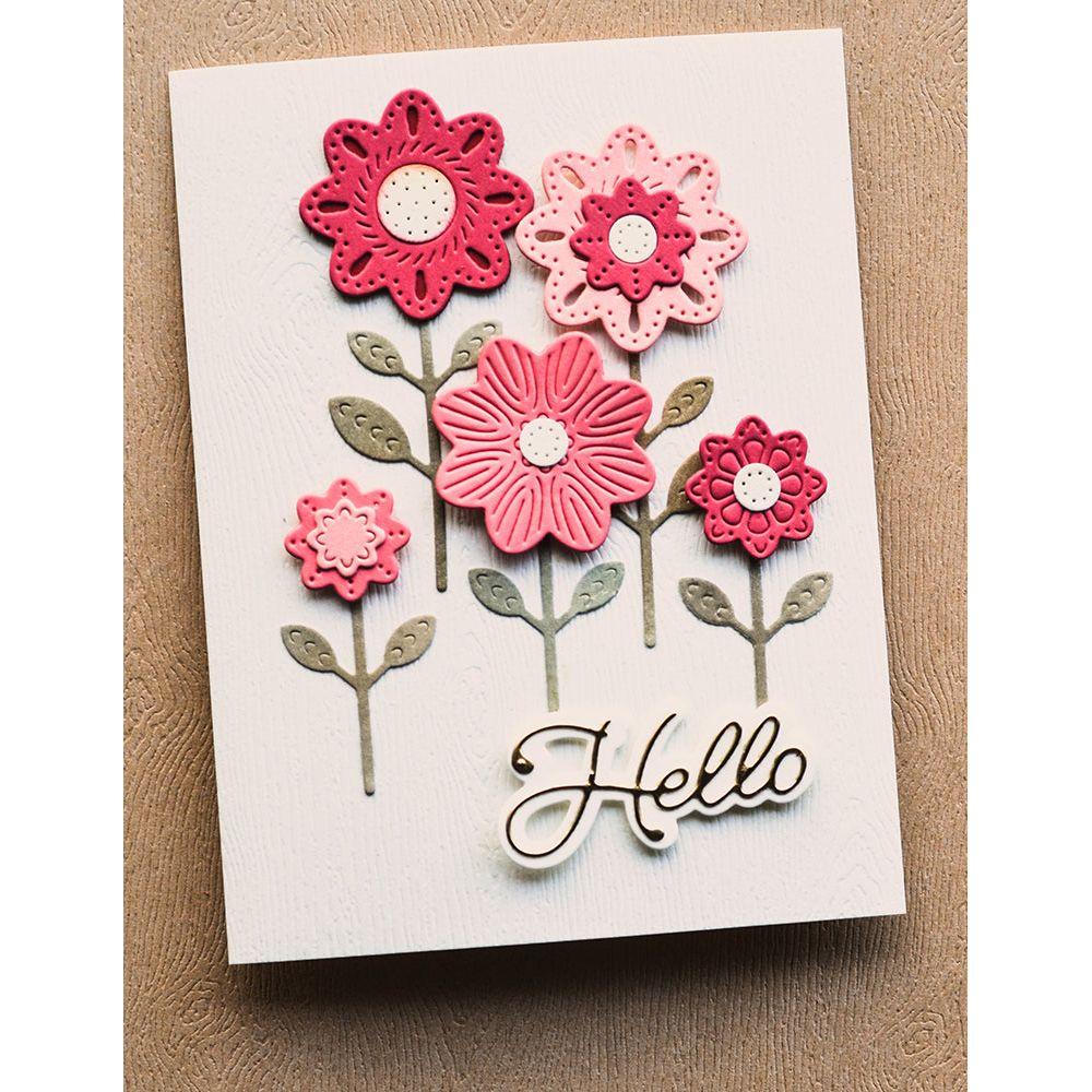 Poppy Stamps Nordic Flower Pots and Stems Dies are crafted from durable steel and are compatible with nearly every machine available on the market. These versatile dies can be used on various materials, including cardstock, felt, fabric, or shrink plastic, giving you the ability to cut, stencil, emboss, and bring your creative ideas to life. This set includes 1 die that cuts out 17 designs. The approximate dimensions are 1.2 x 1.7 inches and 0.8 x 1.1 inches for the assembled pots, and 0.7 x 0.8 inches for the assembled stems. The set includes three vases with stems of leaves that can be used interchangeably. You can mix and match these elements with other Nordic flower dies to create your own garden-inspired designs. Additionally, these dies work well with dies such as Nordic Fancy Blossoms 2604, Nordic Bellflower 2606, Nordic Majestic Bloom 2607, Poppy Stamps Nordic Flower Heads Dies and Nordic Crown Flower 2610.