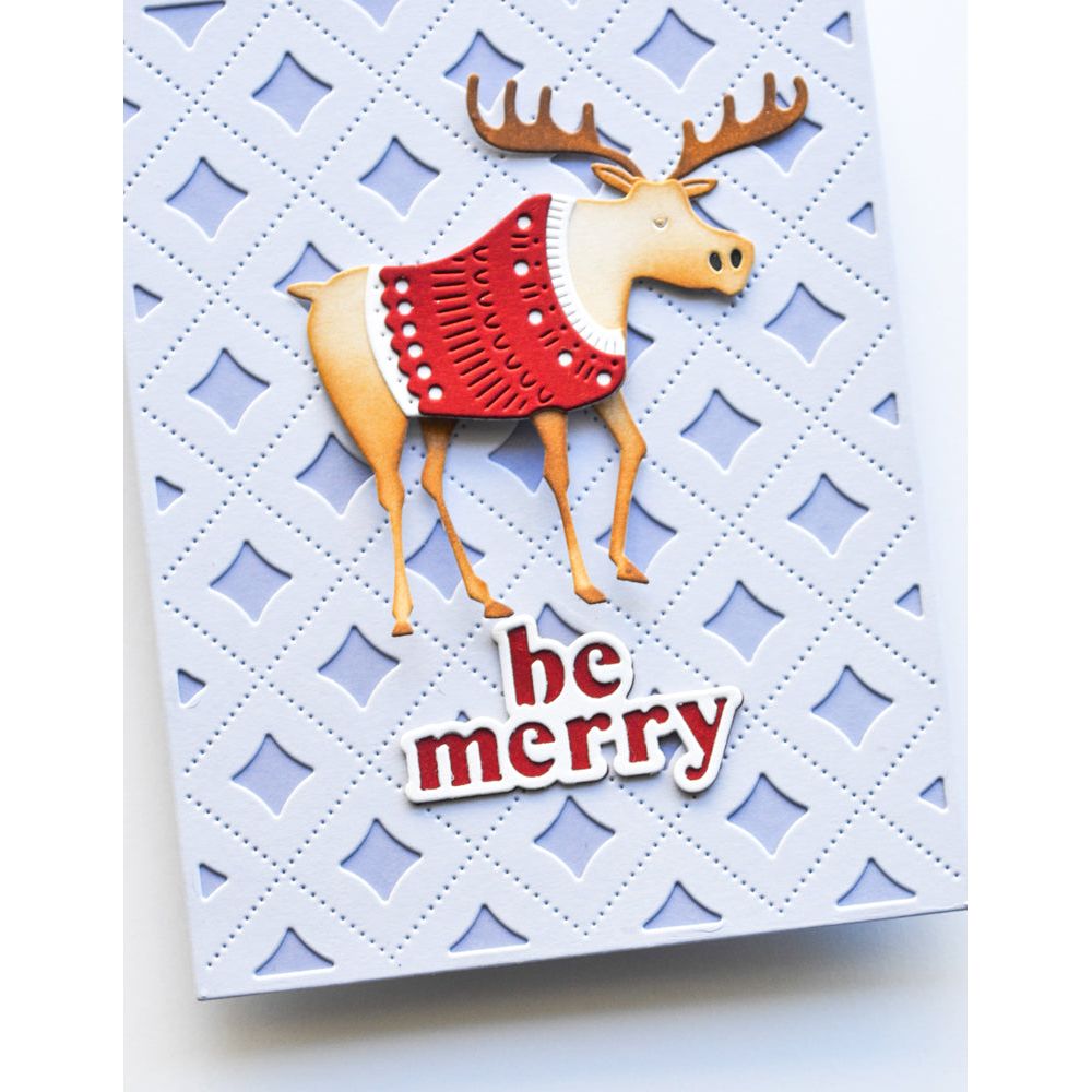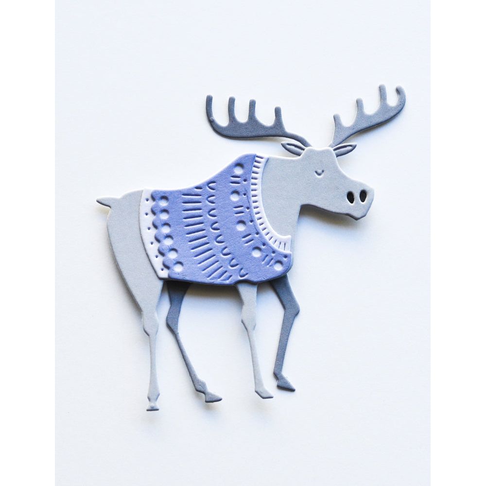 Poppy Stamps Nordic Moose Dies are part of the Nordic Wonderland Collection. Crafted from durable steel and are compatible with nearly every machine available on the market. These versatile dies can be used on various materials, including cardstock, felt, fabric, or shrink plastic, giving you the ability to cut, stencil, emboss, and bring your creative ideas to life. The set includes 2 wafer-thin dies that cut out 7 designs, with the assembled moose measuring approximately 2.9 x 2.9 inches. This moose exudes pride, adorned in a distinctive Scandinavian sweater motif.