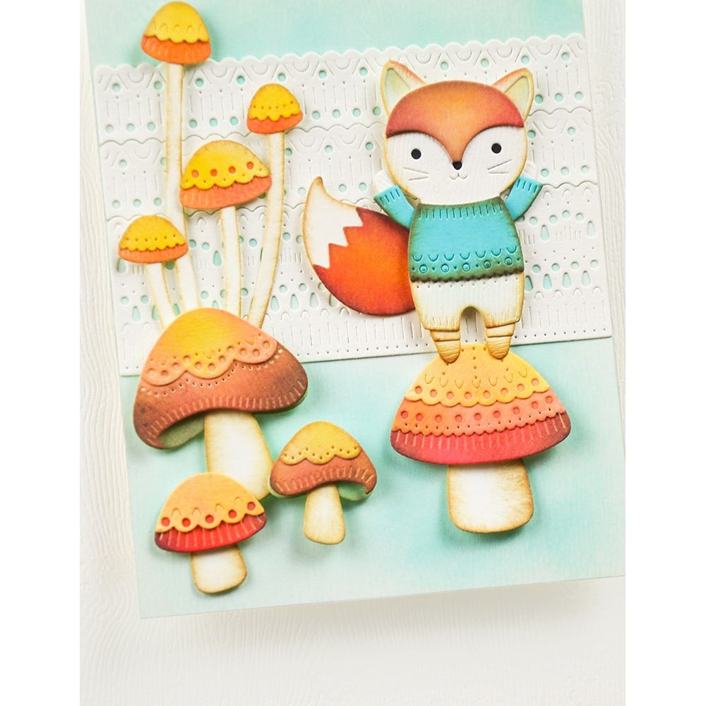 Nordic Button Mushrooms Dies (2715) – This set includes two dies that cut 7 individual pieces to create two charming mushrooms with Scandinavian-inspired patterns on their caps. Assembled mushrooms measure approximately 1.6 x 1.7 inches and 1 x 0.9 inches.