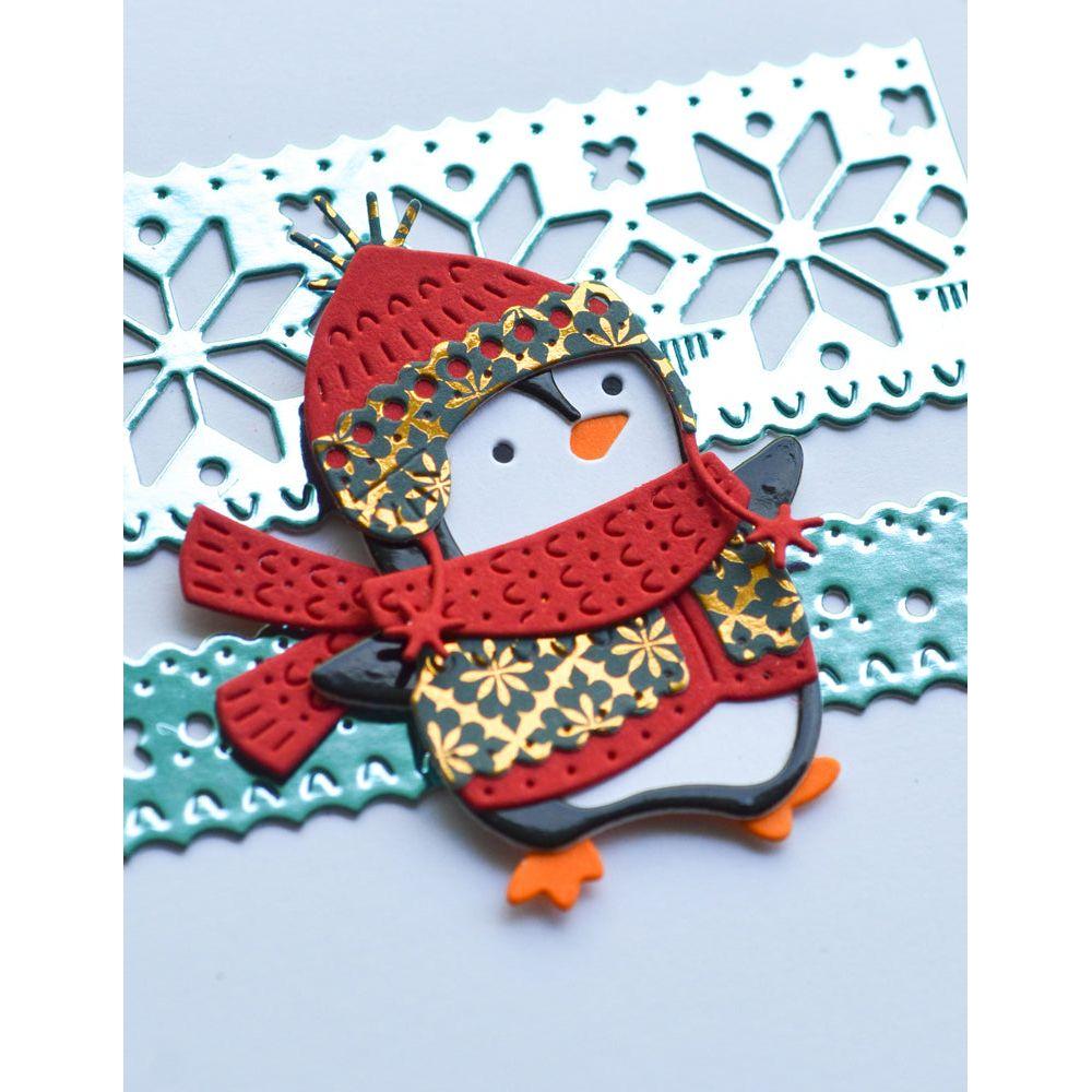 Poppy Stamps Nordic Playful Penguin Dies are part of the Nordic Wonderland Collection. Crafted from durable steel and are compatible with nearly every machine available on the market. These versatile dies can be used on various materials, including cardstock, felt, fabric, or shrink plastic, giving you the ability to cut, stencil, emboss, and bring your creative ideas to life. The set includes 2 wafer-thin dies detabbed and mounted on a magnetic sheet. You can create a cute little penguin approximately 1.8 x 2 inches in size, complete with a 2 x 1 inch scarf and a 1.4 x 1.8 inches hat, all bundled up in a sweater, hat, and scarf for charming winter-themed projects.
