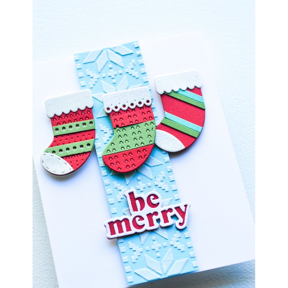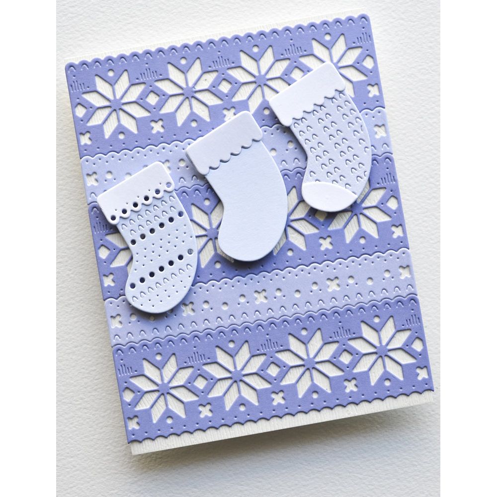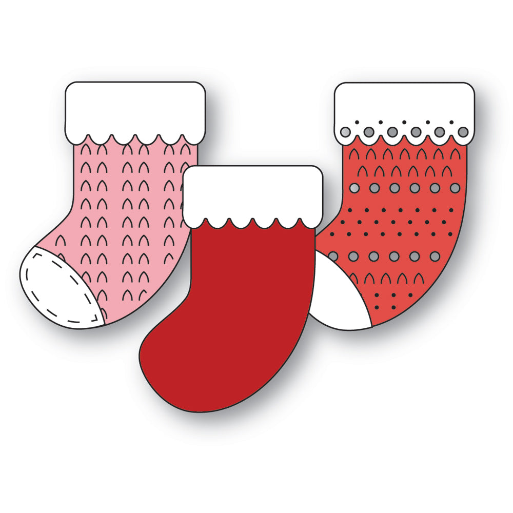 Poppy Stamps Nordic Stockings Dies are part of the Nordic Wonderland Collection. Crafted from durable steel and are compatible with nearly every machine available on the market. These versatile dies can be used on various materials, including cardstock, felt, fabric, or shrink plastic, giving you the ability to cut, stencil, emboss, and bring your creative ideas to life. This set includes 2 wafer-thin dies that cut out 7 designs, detabbed and mounted on a magnetic sheet. Each assembled stocking measures approximately 1.4 x 1.8 inches, featuring different patterns for mix-and-match crafting of festive stockings to hang by the chimney.