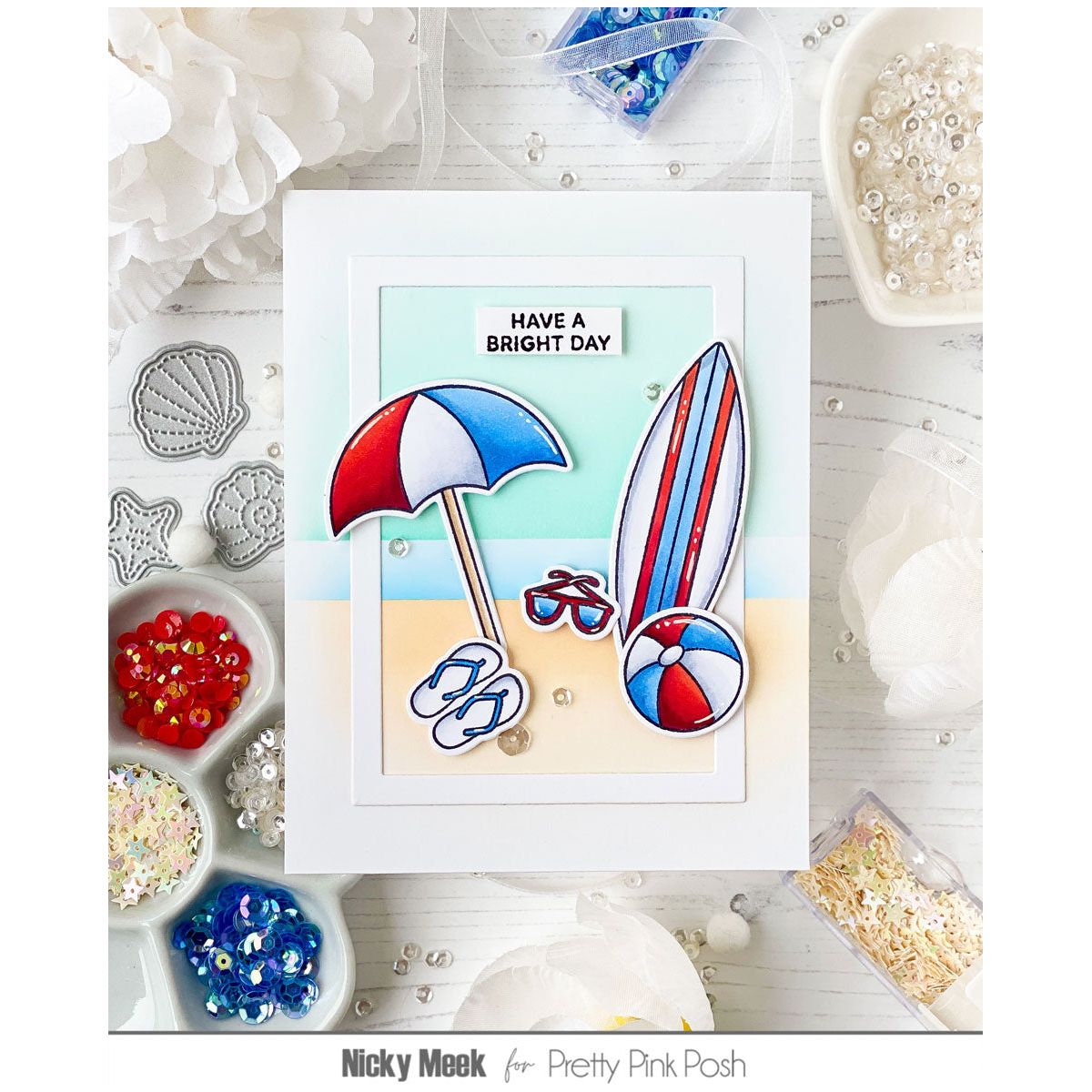 The Pretty Pink Posh Beach Fun Dies are designed to coordinate with the Beach Fun Clear Stamps, sold separately. This set includes 12 high-quality steel outline dies, perfect for cutting out the stamped images with precision. Compatible with most die cutting machines.