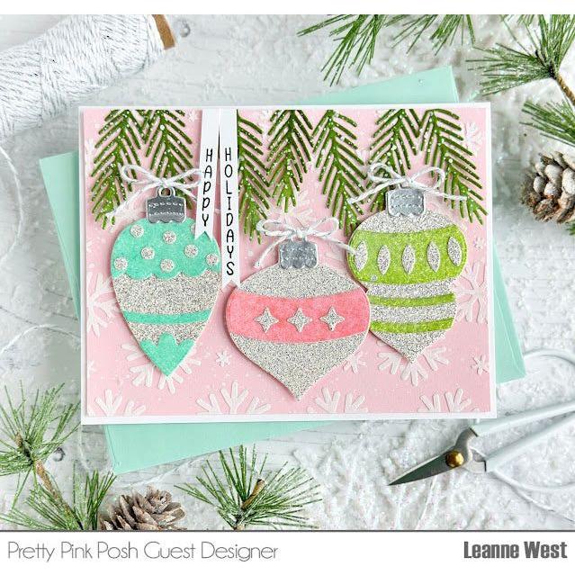 The Pretty Pink Posh Build An Ornament Dies is a fun set for creating and decorating 4 different-sized ornaments. This high-quality steel craft die set is perfect for scrapbooking, card making, and other paper crafts.