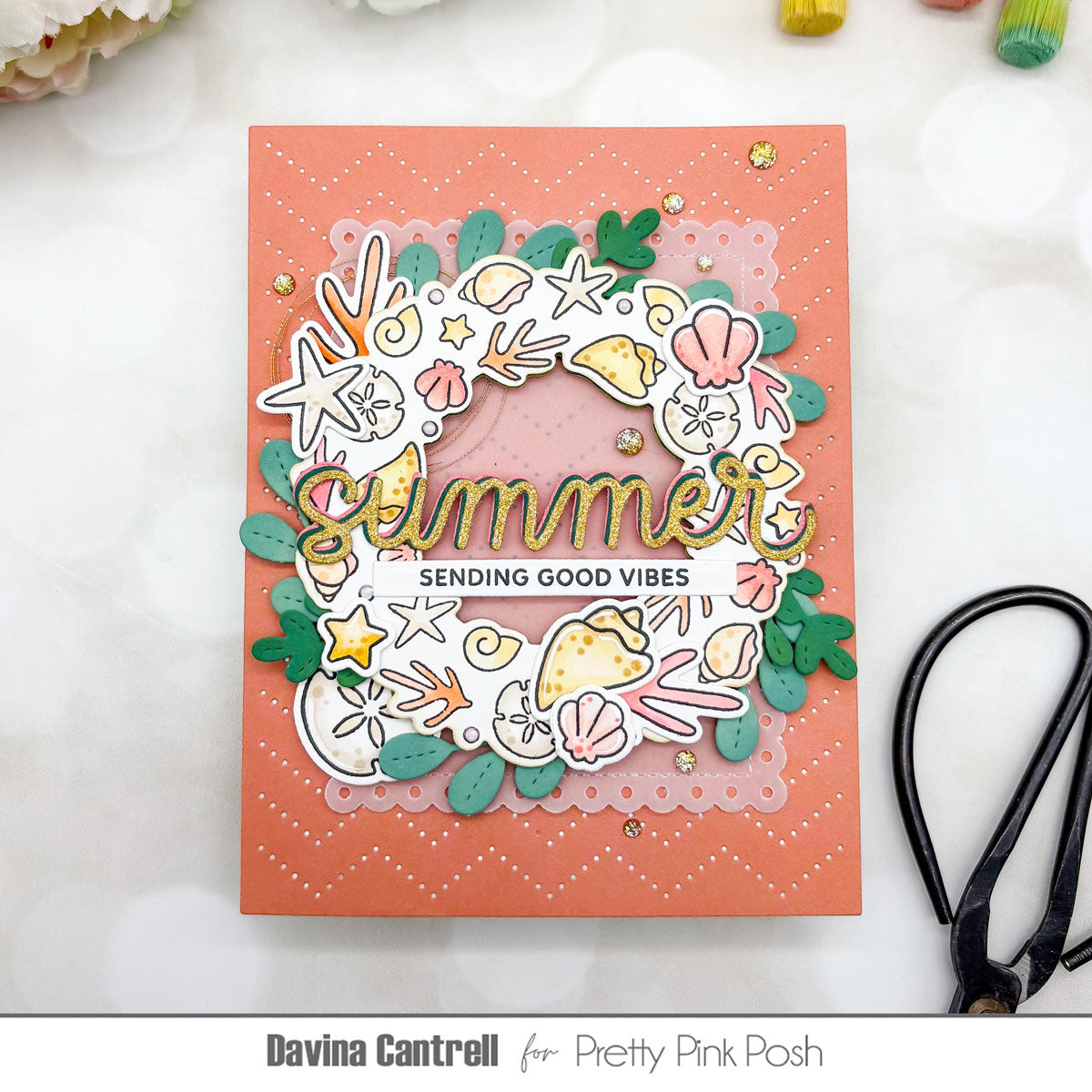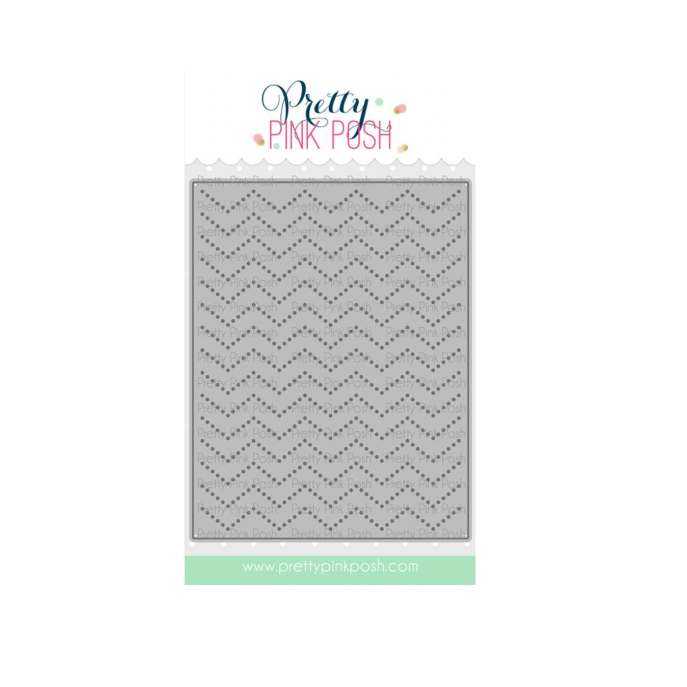The Pretty Pink Posh Chevron Pierced Plate Die creates a stylish background with a chevron design made up of tiny pierced dots. Perfect for adding subtle texture to cards and paper projects.