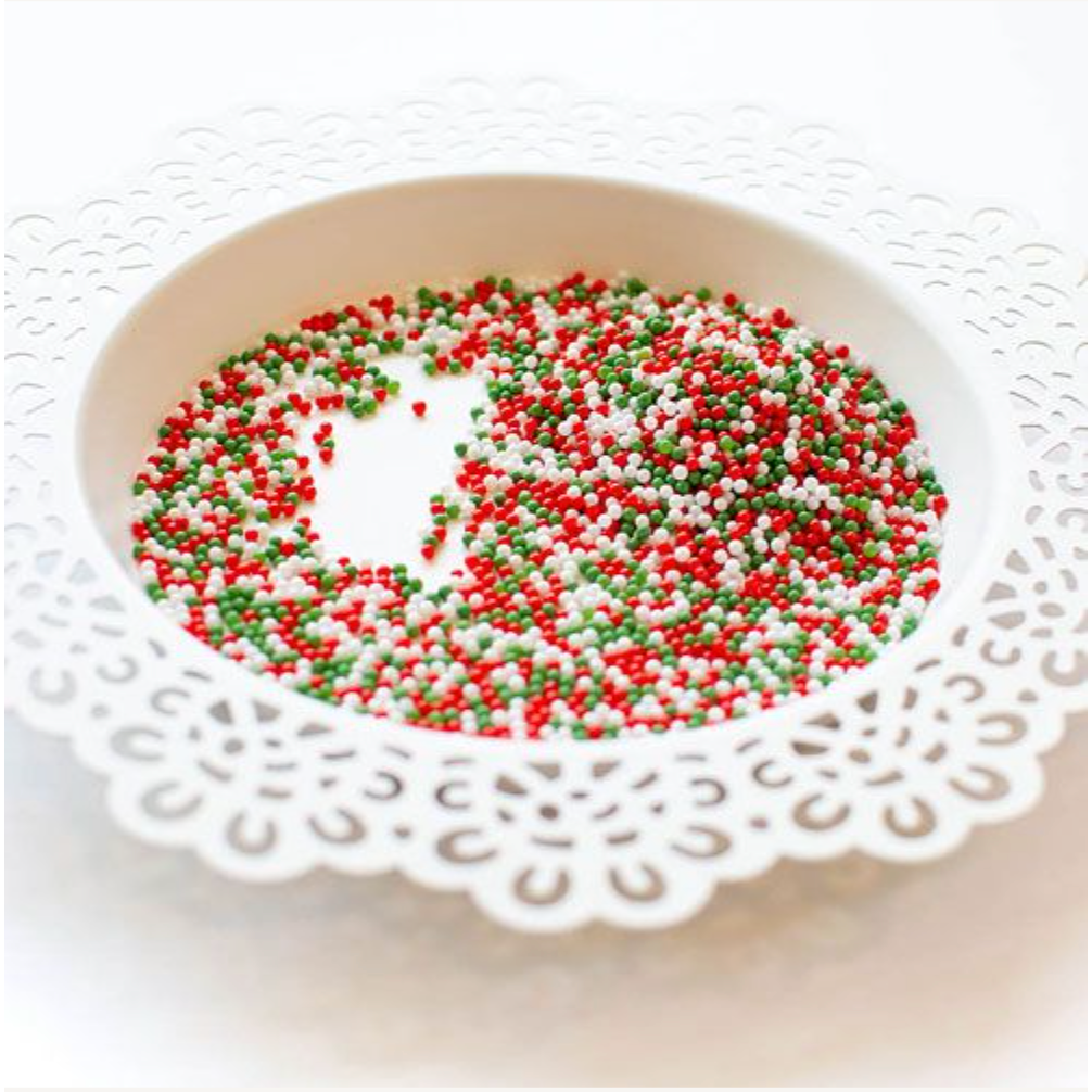 Inside each package, you'll find 2 teaspoons of 2mm beads. Please be aware that these beads are not suitable for young children and are strictly non-edible. The set comprises traditional holiday colors, including red, green, and white round beads.