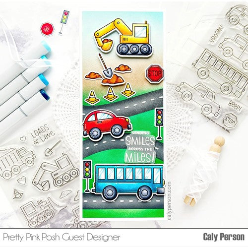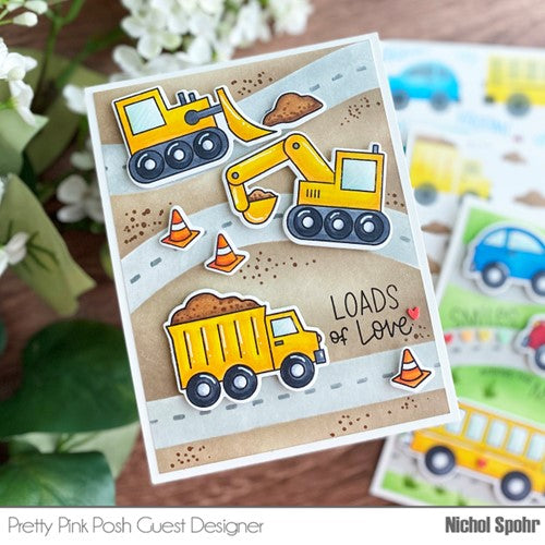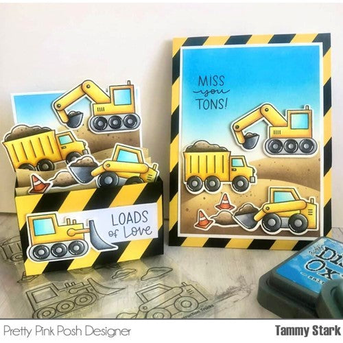 These high-quality 100 percent steel dies coordinate with the Construction Trucks stamp set. Includes 10 dies. Made in the USA and compatible with most die cutting machines.