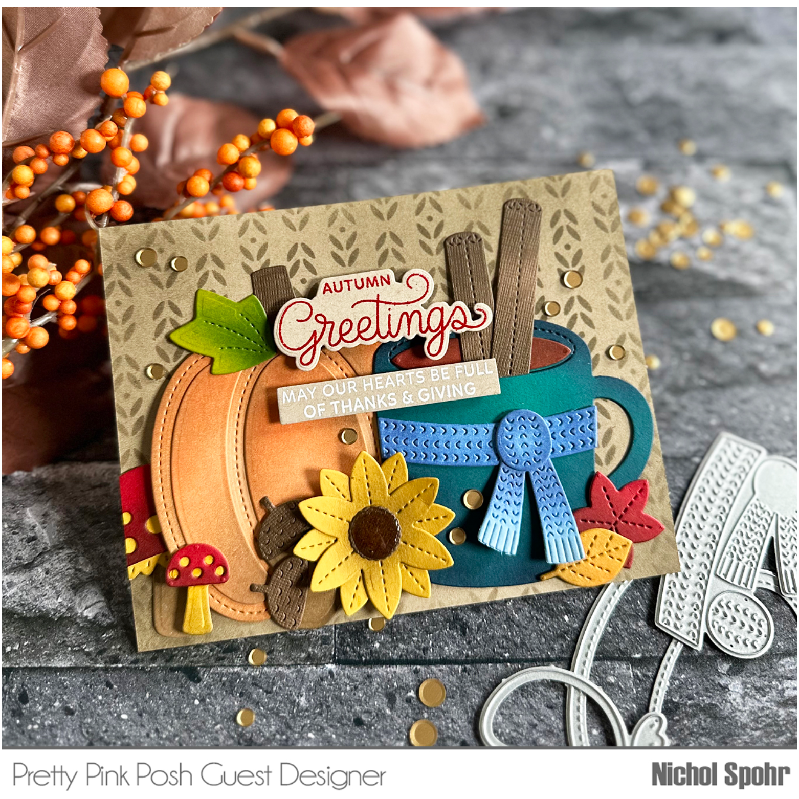 Elevate your autumn-themed projects with the Pretty Pink Posh Fall Mug Additions Dies. This premium craft die set, crafted from high-quality 100 percent steel, is perfect for enhancing your scrapbooking, paper crafts, and more. It's designed to complement the Winter Mug die set, not included, and includes 11 pieces.