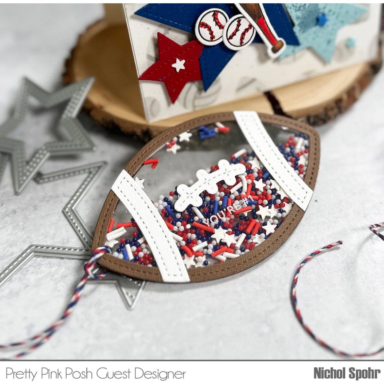 Introducing the Pretty Pink Posh Football Shaker Dies, perfect for crafting projects for the football fans in your life! This high-quality steel craft die set is shaped like a football and is ideal for adding texture to your creations. The set includes 5 pieces, with the football measuring 2.4375 inches by 4 inches. Compatible with most die cutting machines.