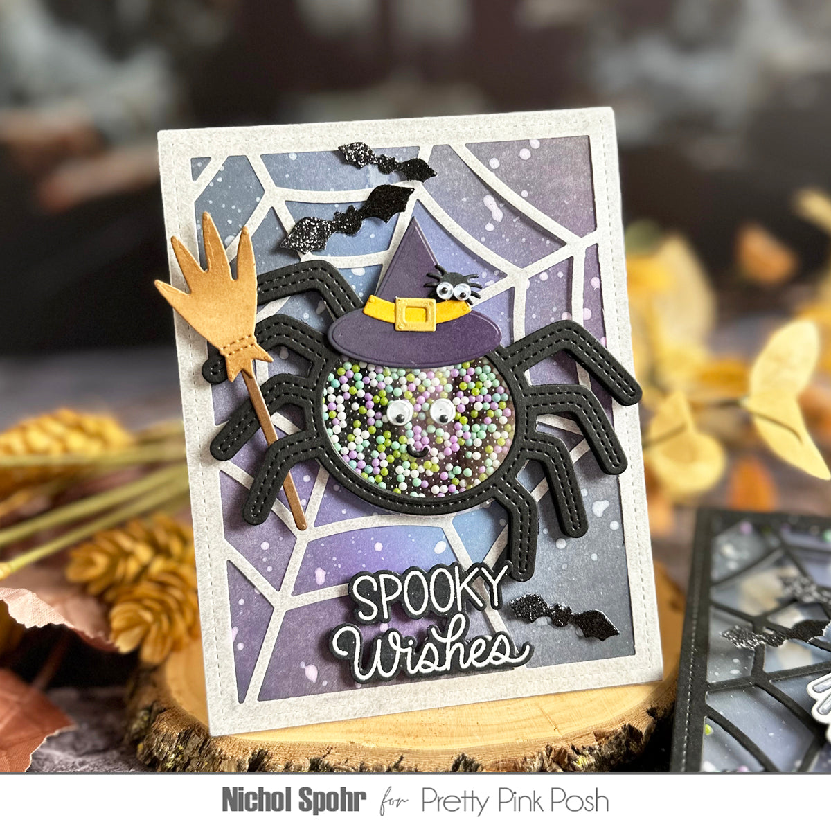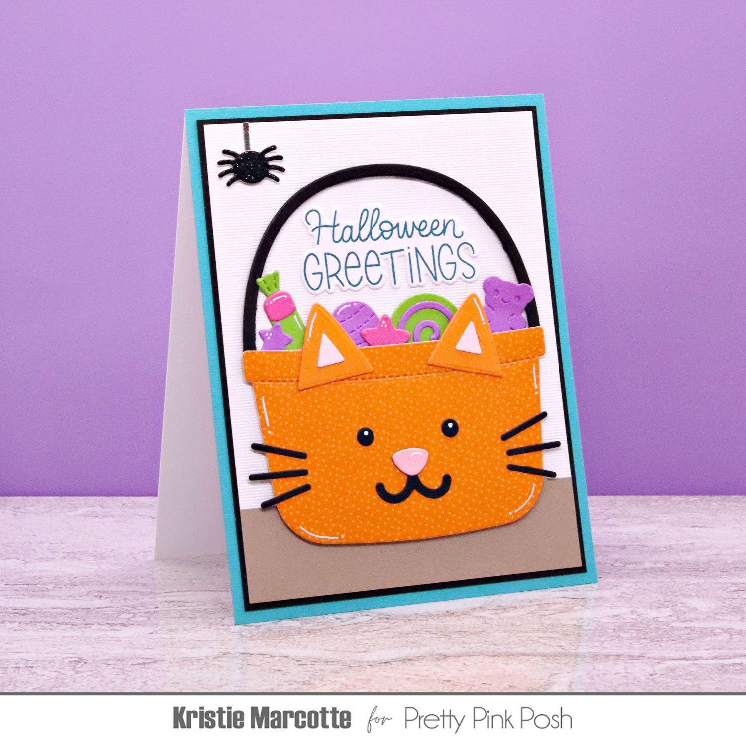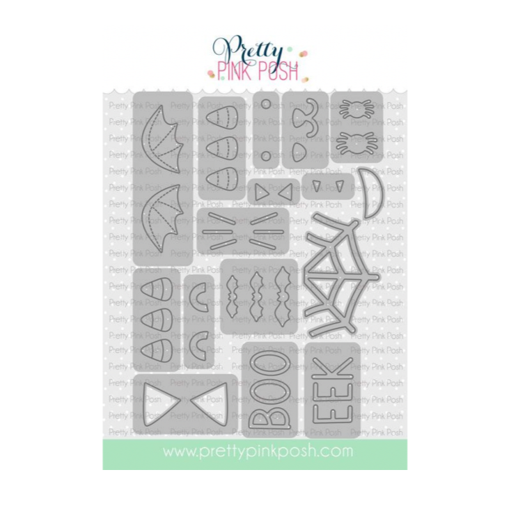 Pretty Pink Posh Halloween Holder Additions Dies coordinate with the Candy Bucket Dies, sold separately, to expand your bucket-themed designs. This set includes 16 dies with fun Halloween accents like candy corn, bats, wings, a cat face and whiskers, spiders, pointed ears, spiderwebs, fangs, and sentiments such as boo and eek.