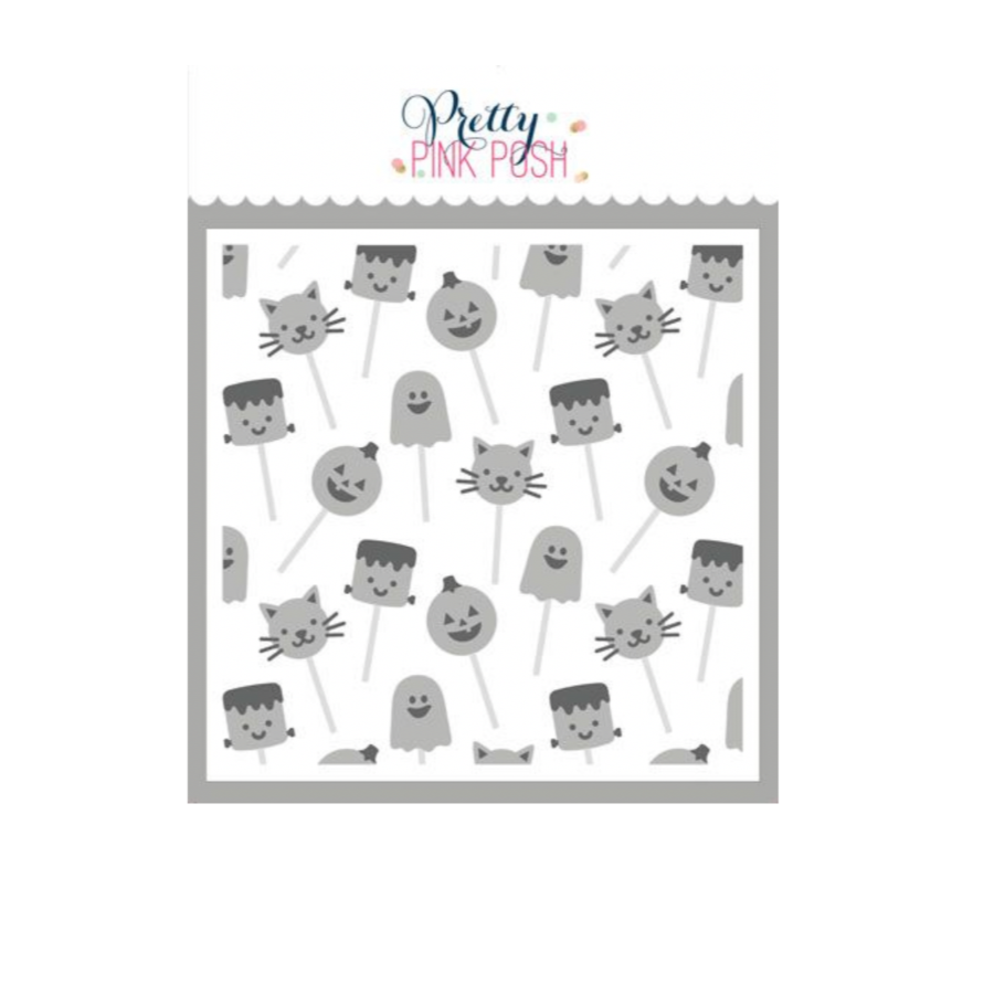 Pretty Pink Posh Halloween Cake Pops Stencils includes three 6 x 6 inch layering stencils to create detailed, pattern of spooky cake pops! Use with inks, embossing paste, sprays, or other mediums to add color and texture to your projects. Made in the USA. Compliments the Halloween Cake Pops Dies, sold separately.