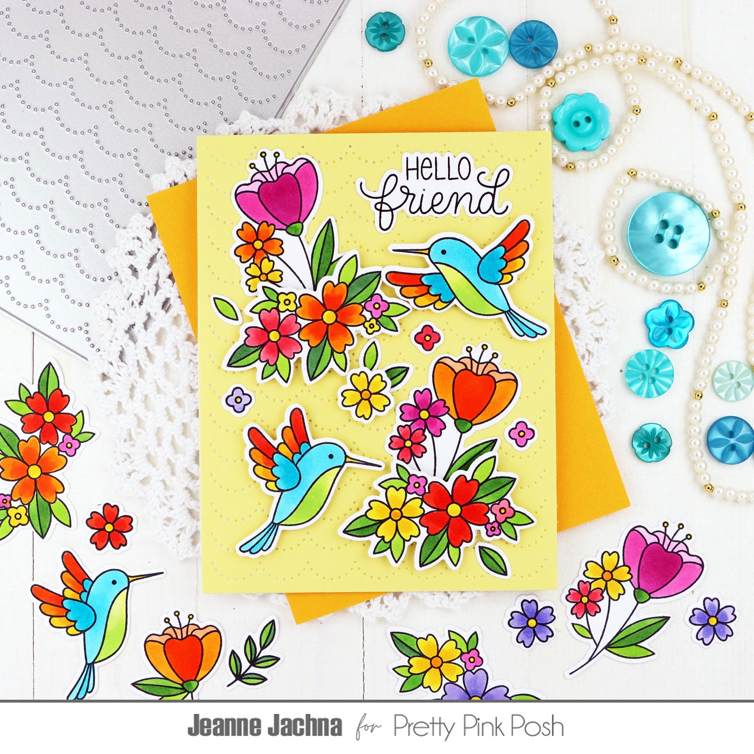 Pretty Pink Posh Hummingbird Floral Dies coordinate with the Hummingbird Floral Clear Stamps, sold separately, to cut out the stamped images with precision. This high-quality steel die set includes 11 pieces and is compatible with most die-cutting machines.