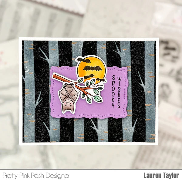 The Pretty Pink Posh Layered Birch Trees Stencils contain two layering stencils that create the perfect birch tree background for your projects. Simply place the stencil over your project area and secure it with washi tape or repositionable adhesive. You can add fun patterns using inks, embossing paste, sprays, or other mediums. Made in the USA, each stencil measures 6 x 6 inches.
